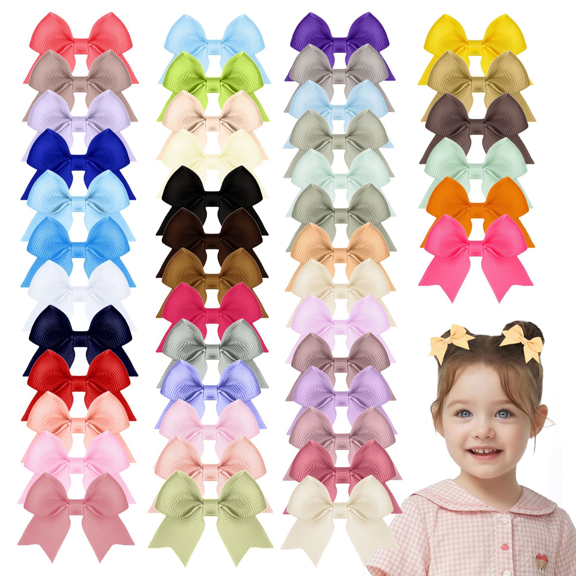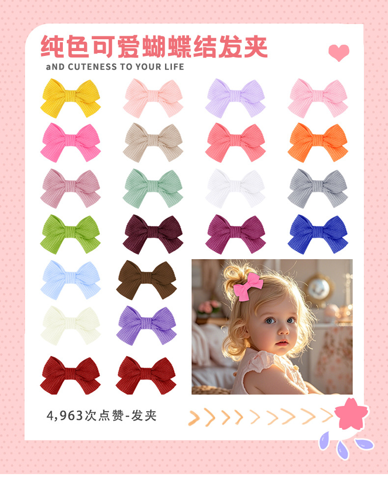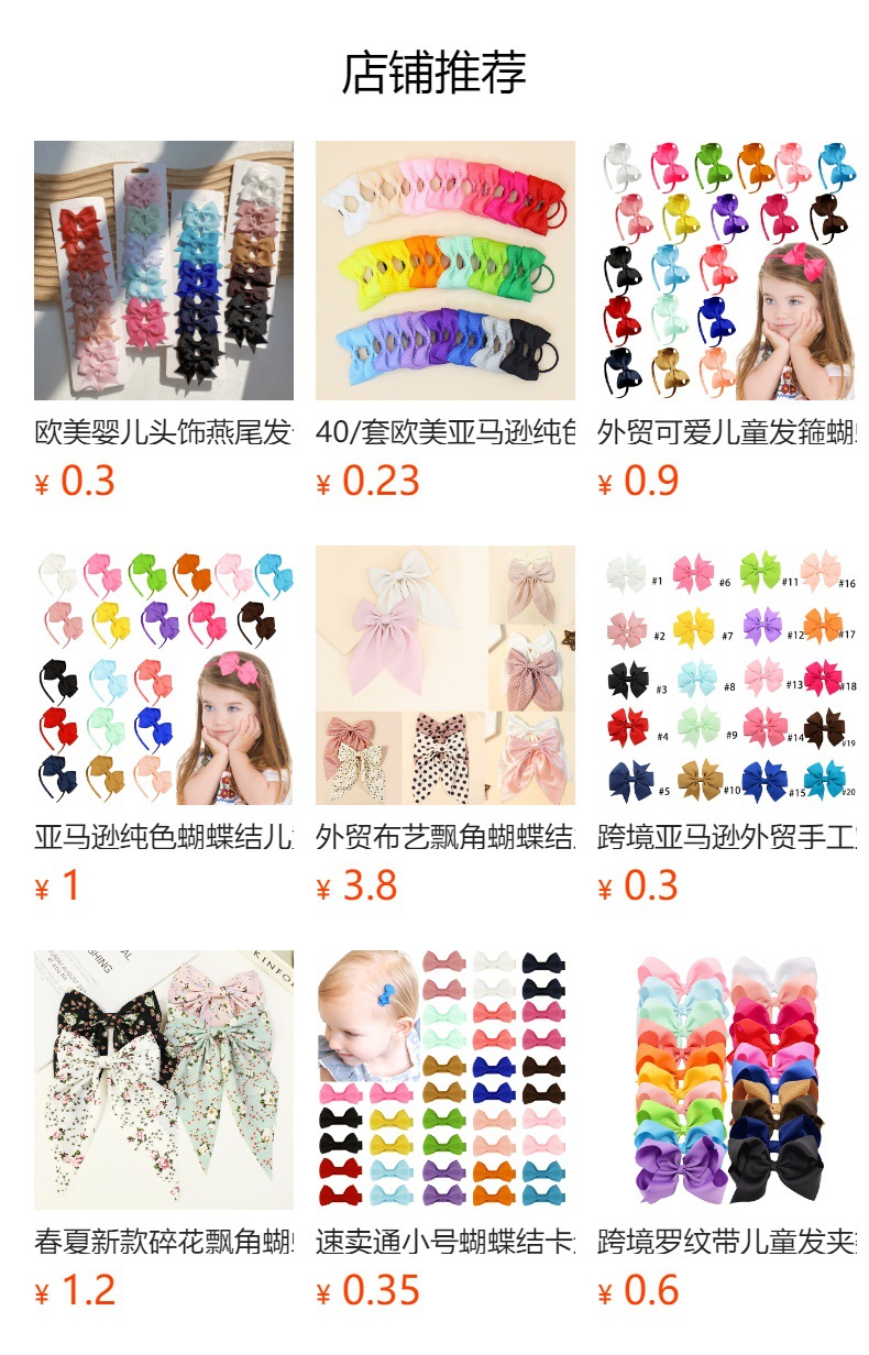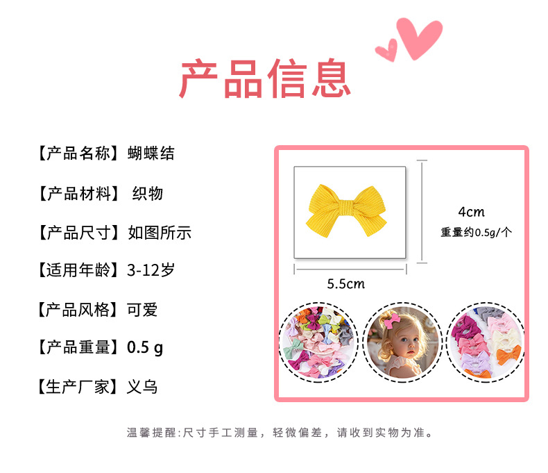 【名称】跨境欧美亚马逊纯色竖条纹儿童发夹包边蝴蝶结宝宝边夹批发头饰