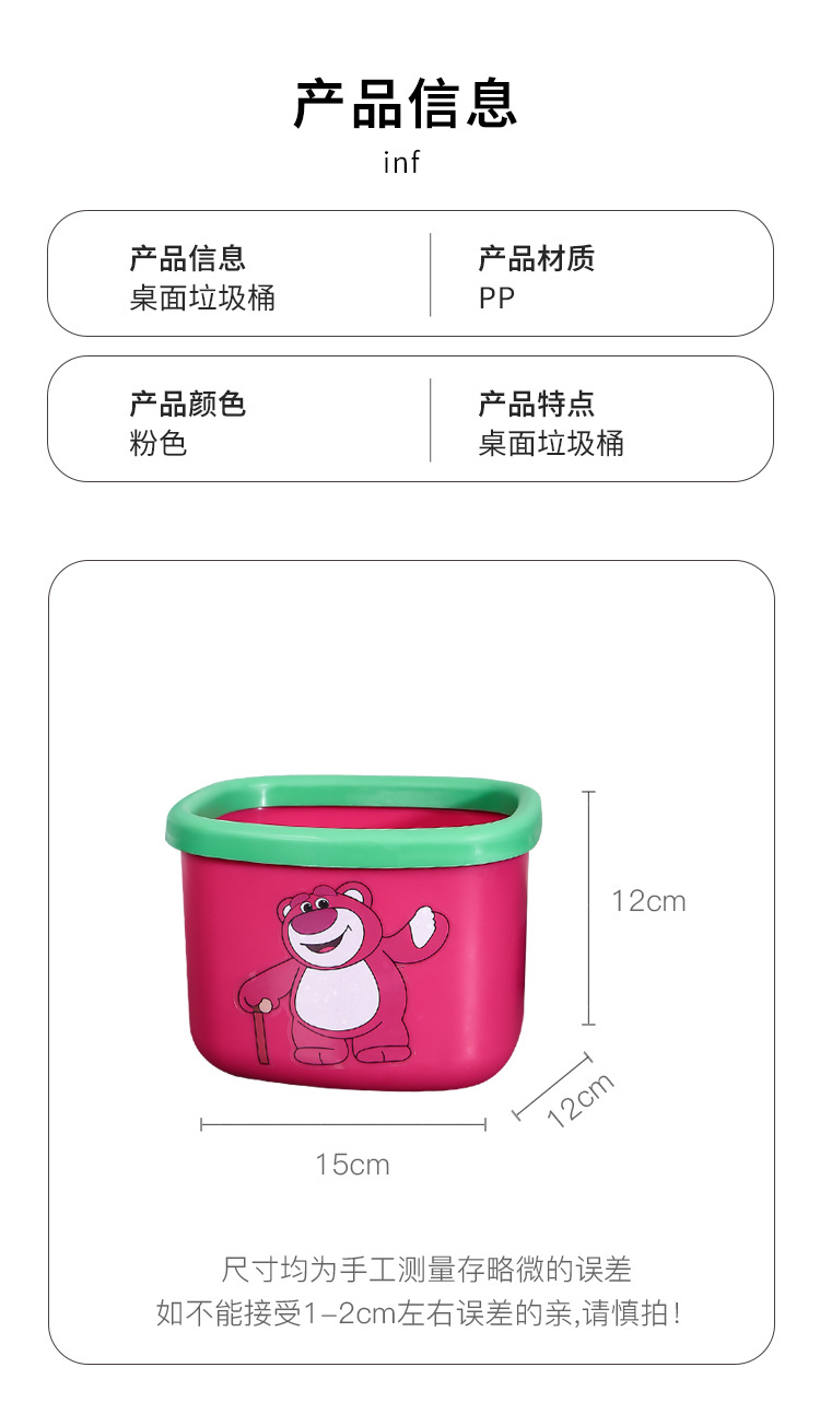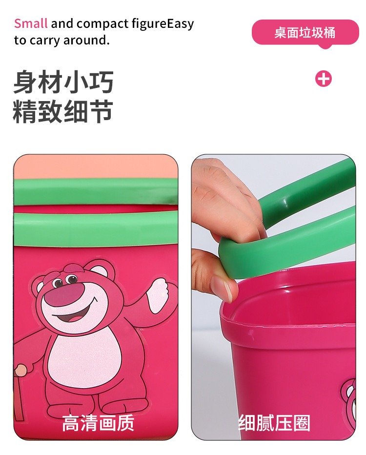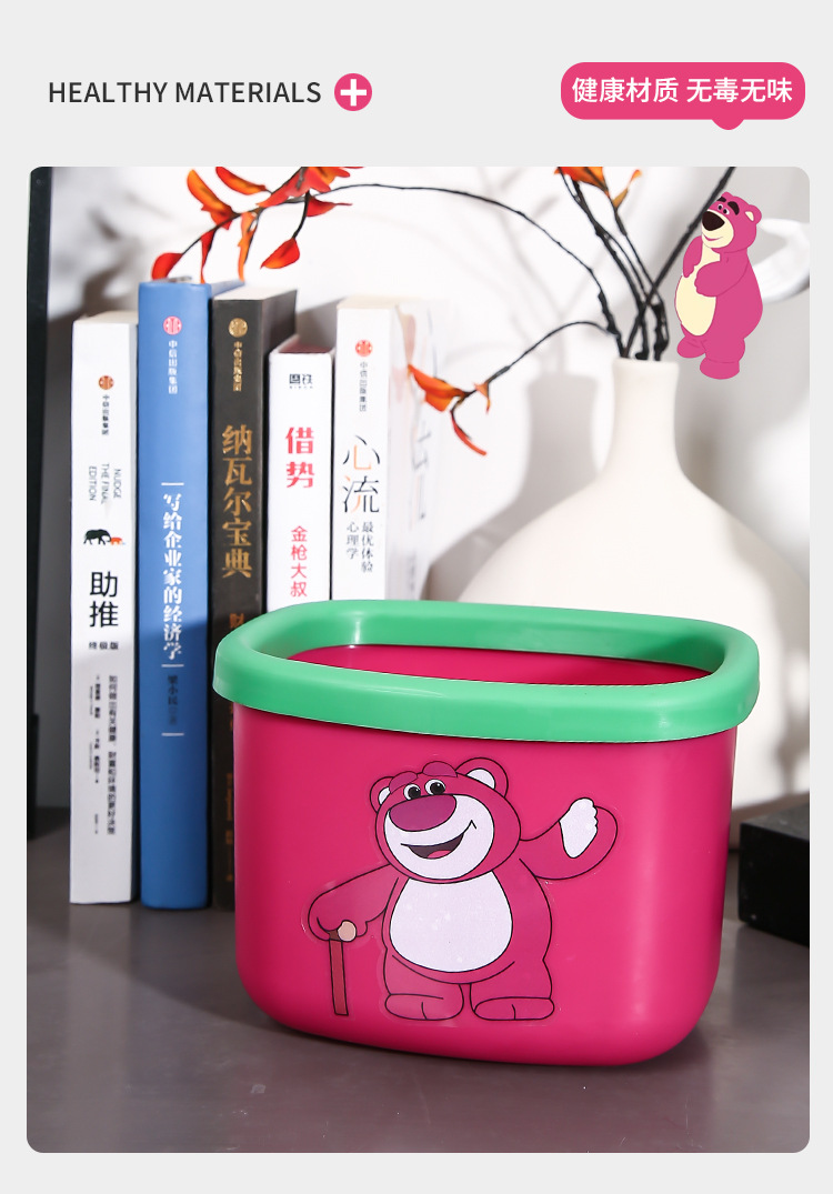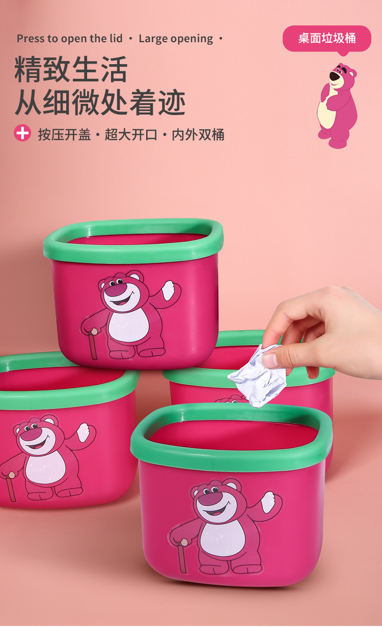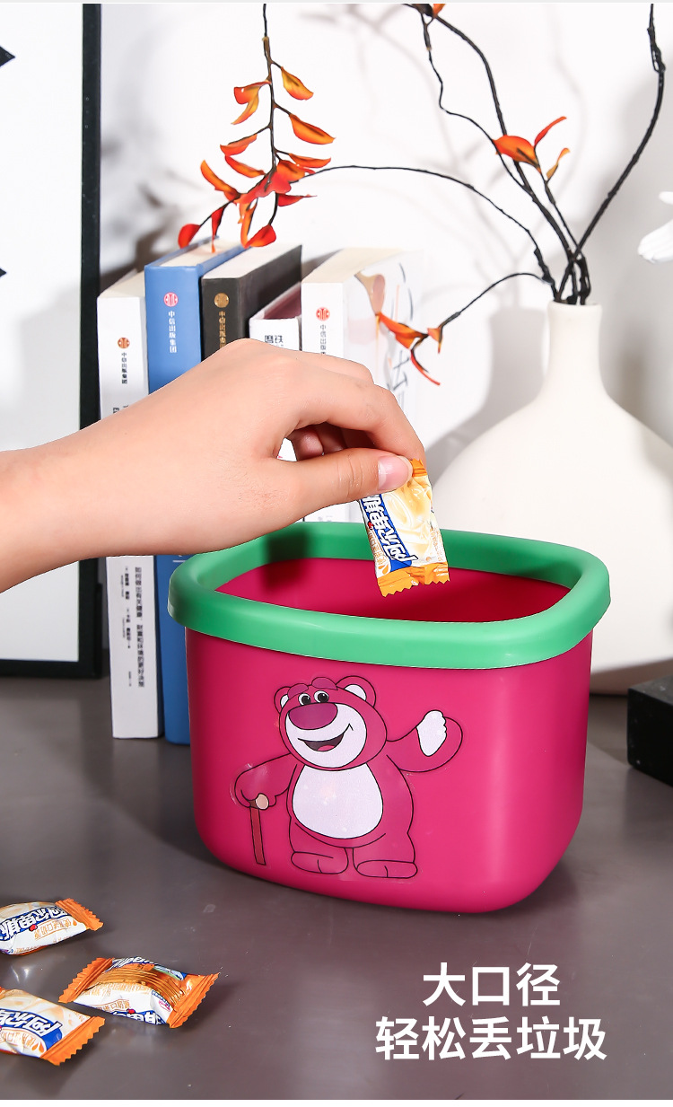 新商品のアニメのイチゴの熊のデスクトップはかごの寮の良いものを収納します。プラスチックはゴミ箱の熊の四角形のゴミ箱を厚くします。