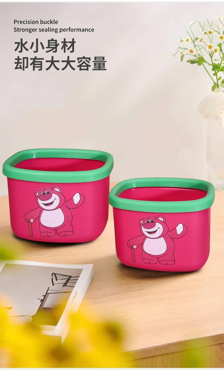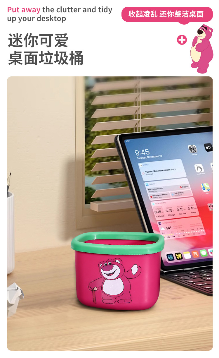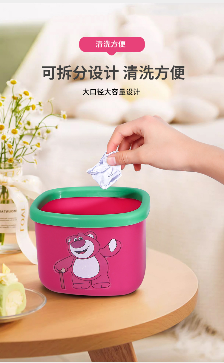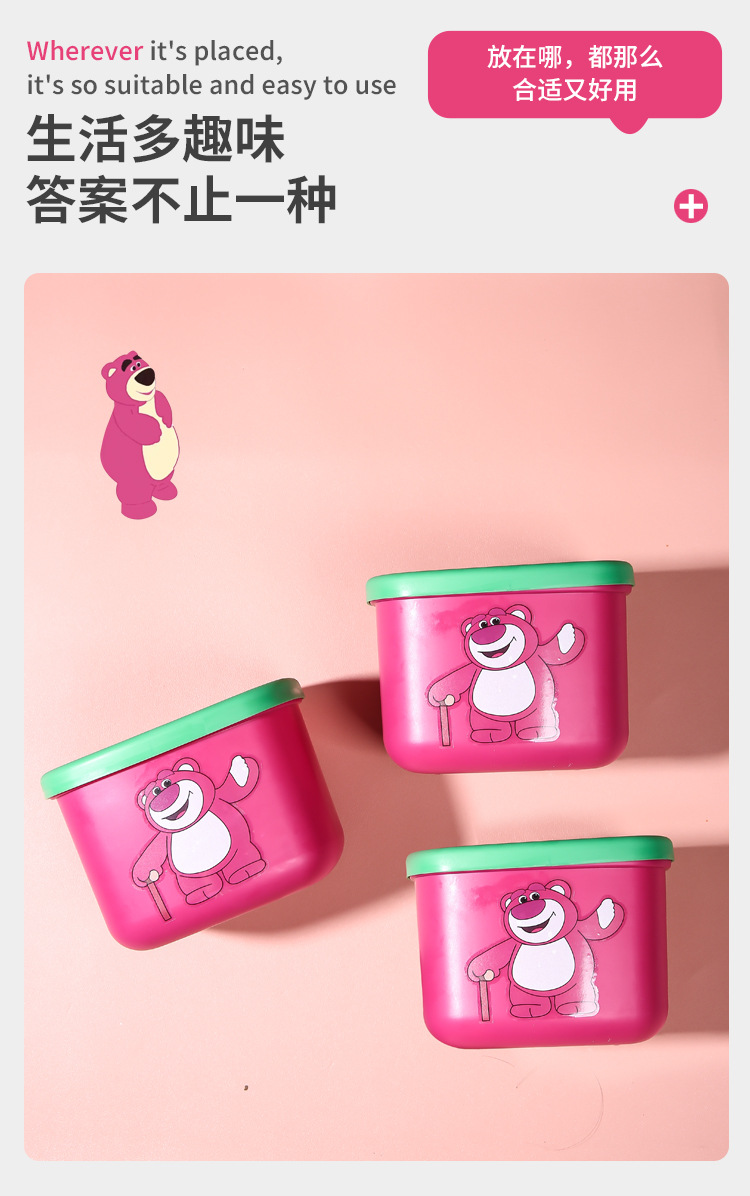 新商品のアニメのイチゴの熊のデスクトップはかごの寮の良いものを収納します。プラスチックはゴミ箱の熊の四角形のゴミ箱を厚くします。
