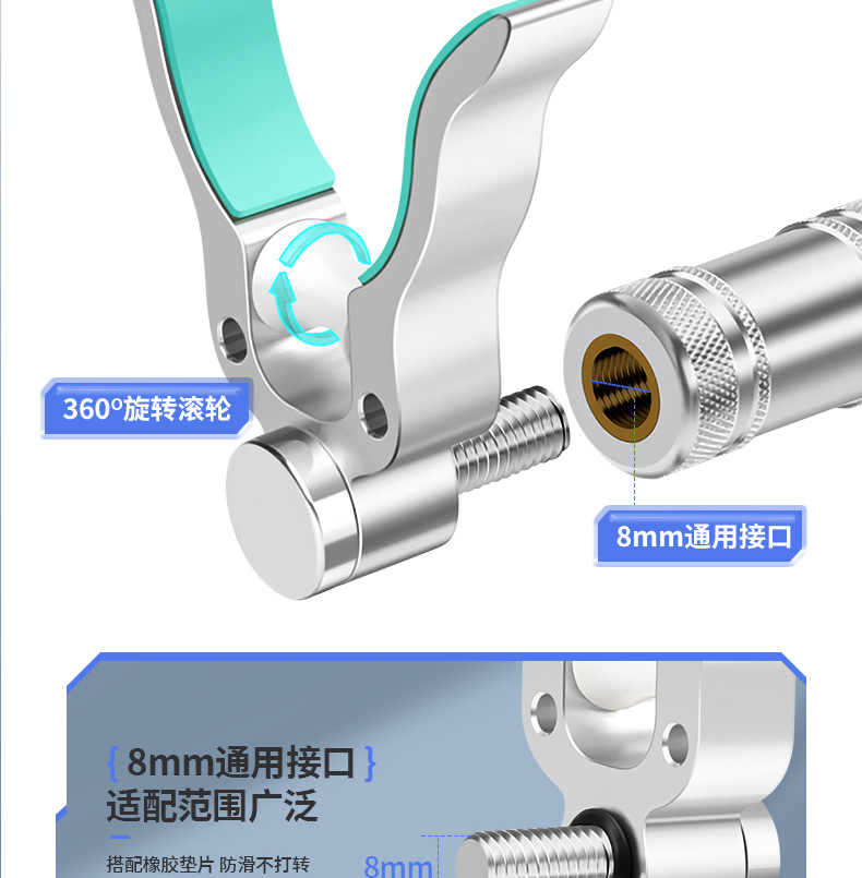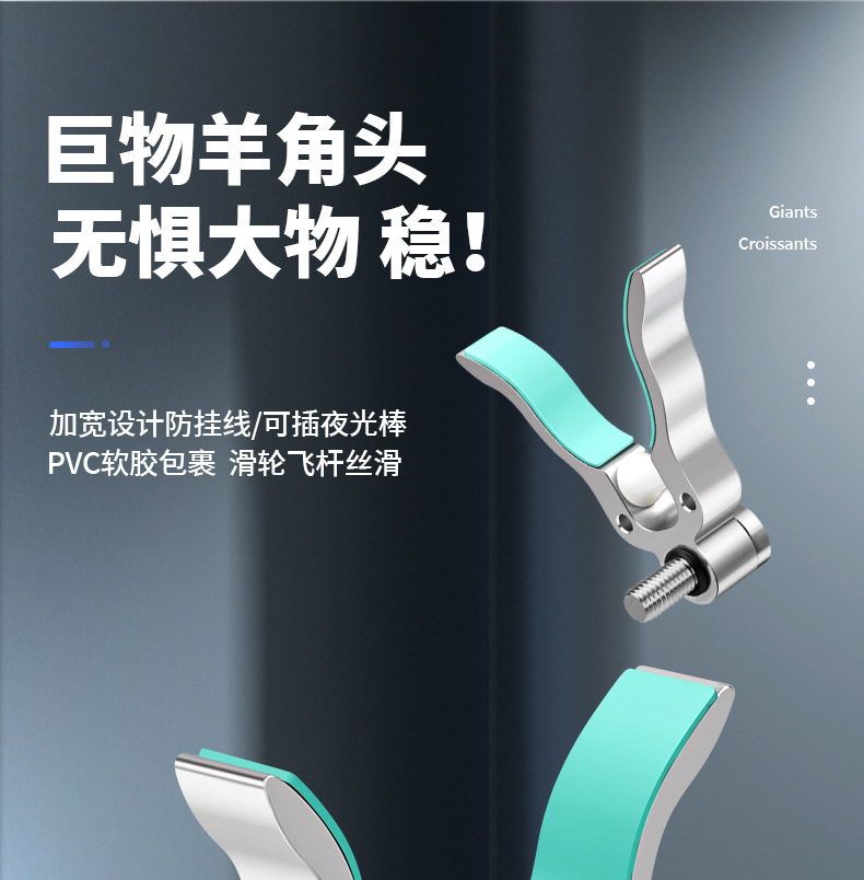 アルミ合金大物スタンドヘッド羊角頭砲台スタンド部品共通8mmプーリーシリコンパッドは釣竿を傷つけない