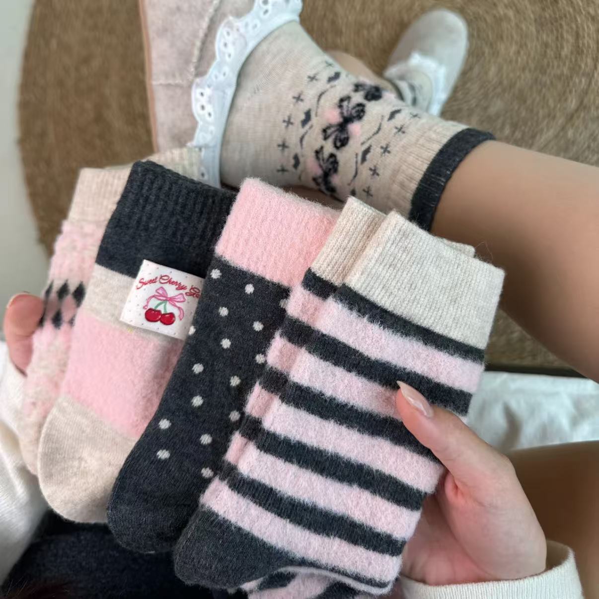 2025秋冬新作 レディースソックス ミドル丈 パイルソックス 女性用 日本風 アンコラレッドソックス ララソックス 万能ソックス 卸売