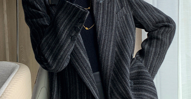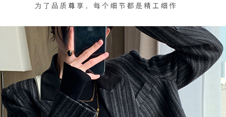 现货6810胖MM大码秋冬西装抗起球斜纹呢子毛呢外套女