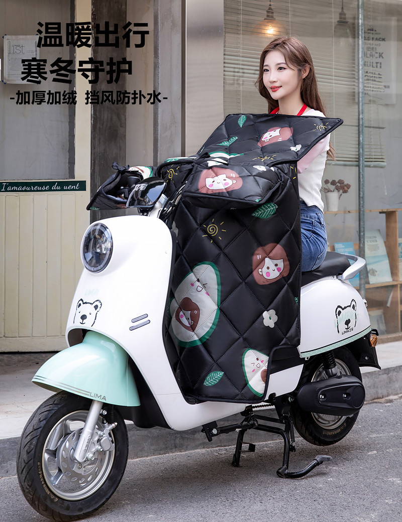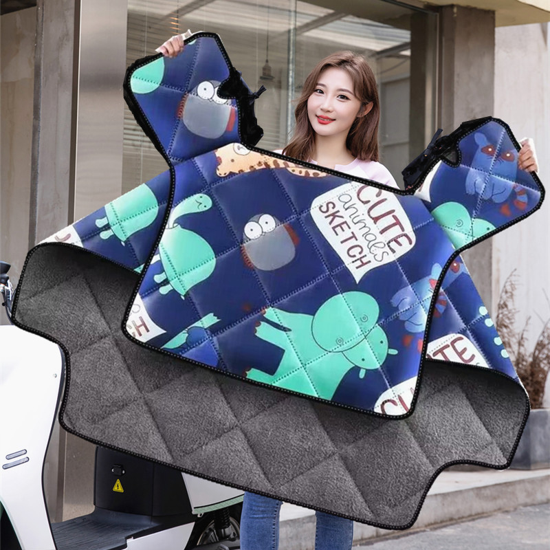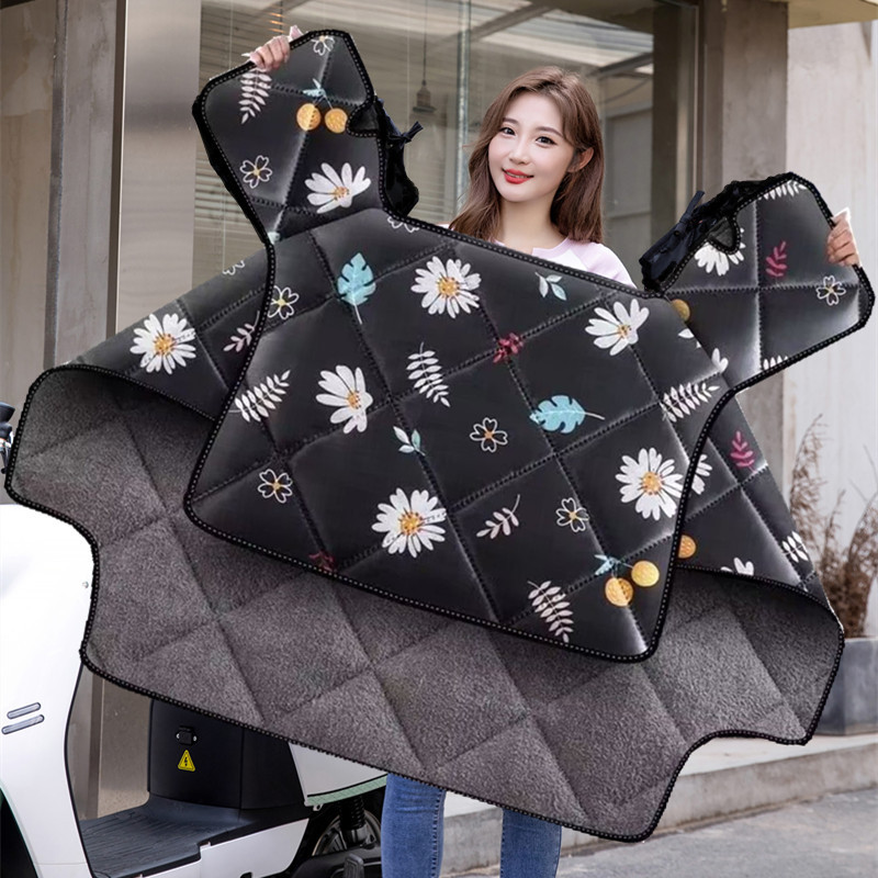 冬には、ベルベットを厚くして保温した電気自動車の防風が電気自動車の防風にバイクの防水膝カバーにされた