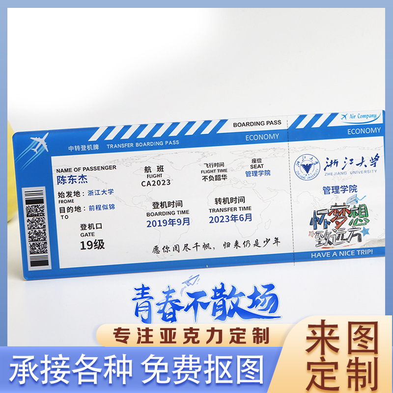 亚克力定制登机牌飞机票毕业纪念卡邀请函请柬票diy卡片门票票根
