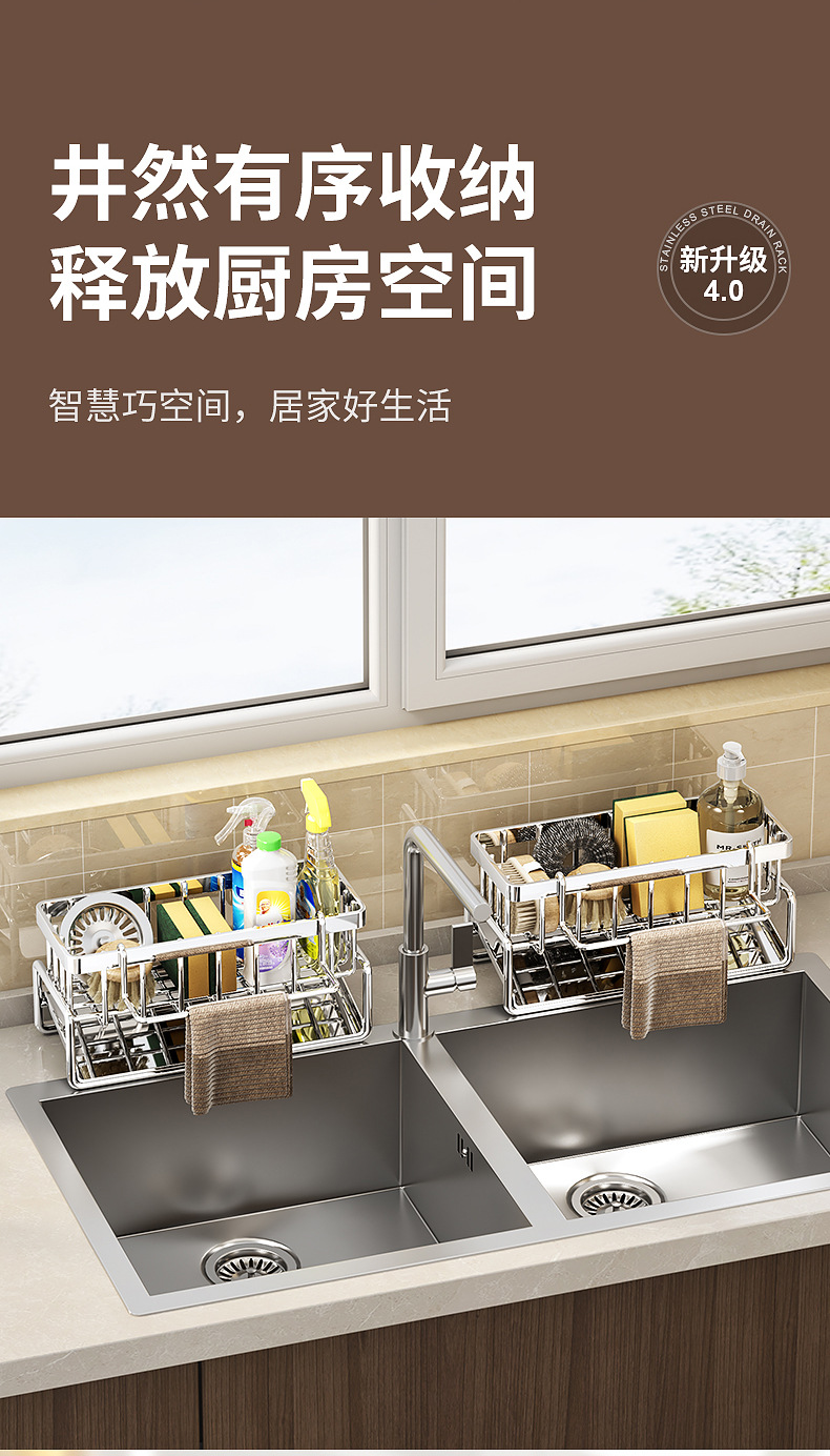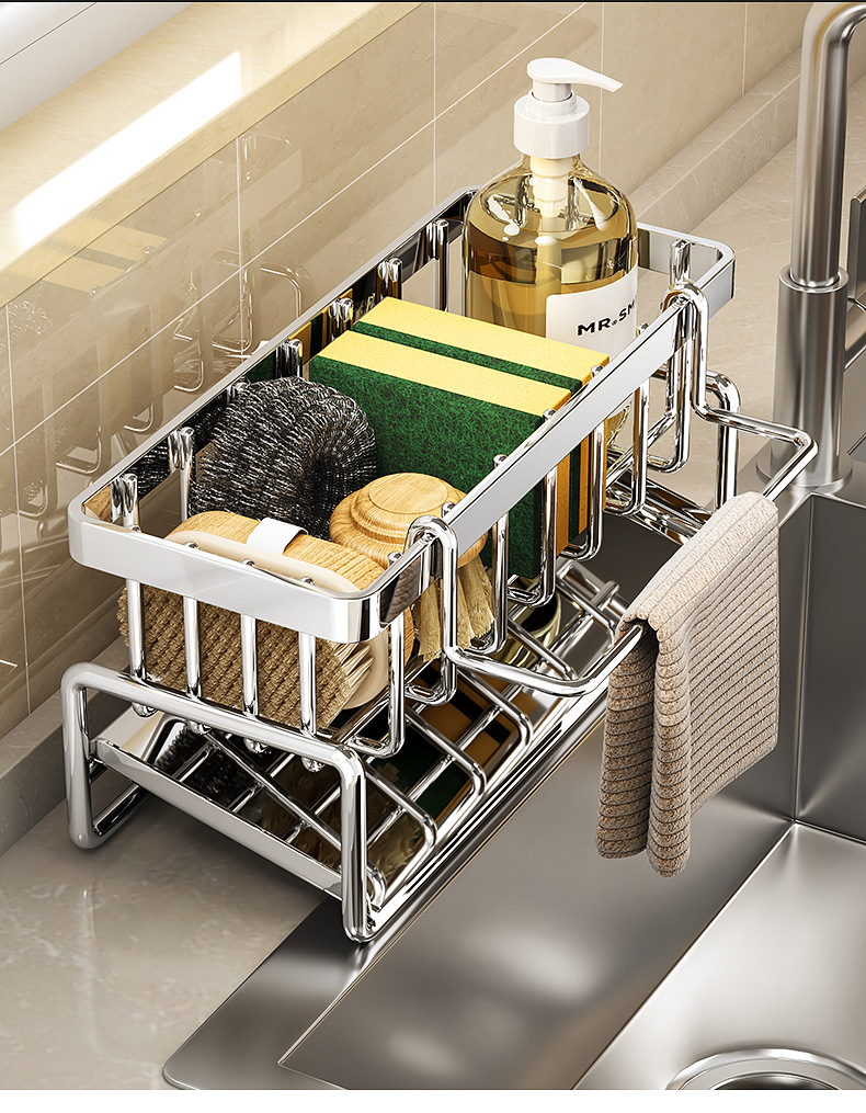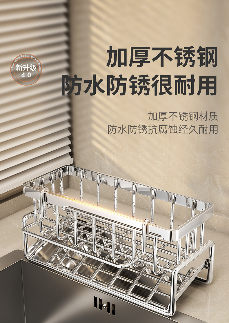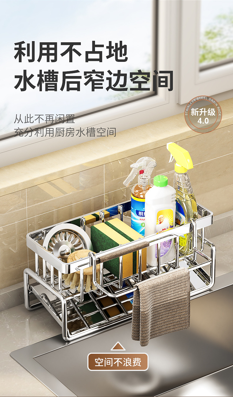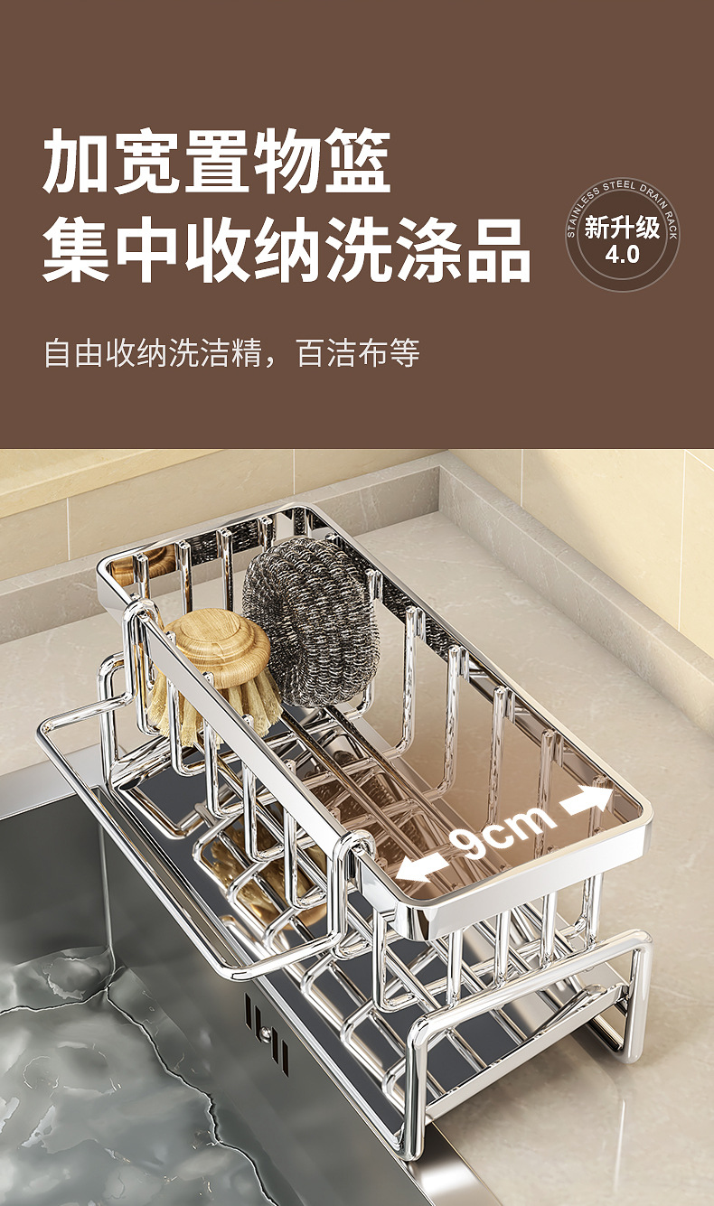 304不锈钢水龙头置物架厨房用品水池水槽收纳洗碗海绵抹布沥水架