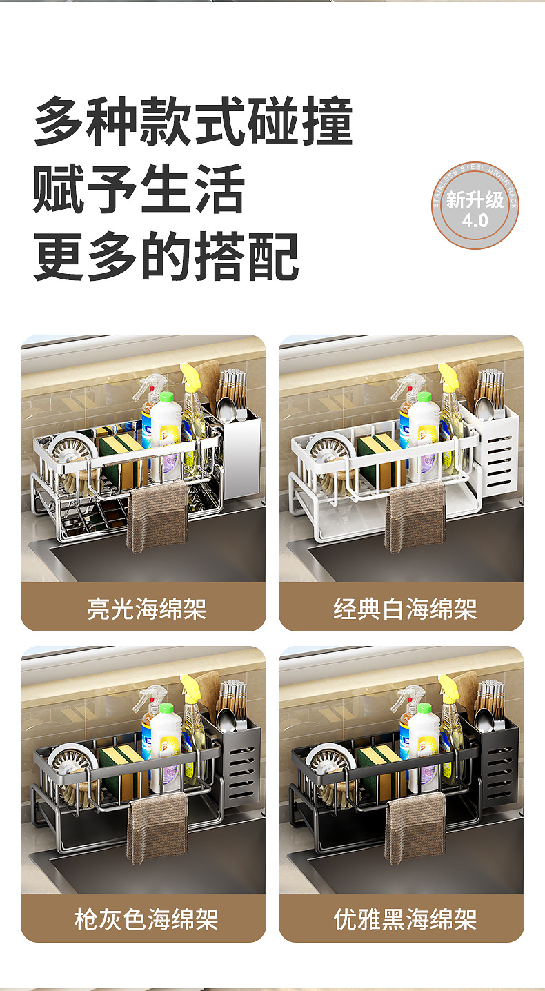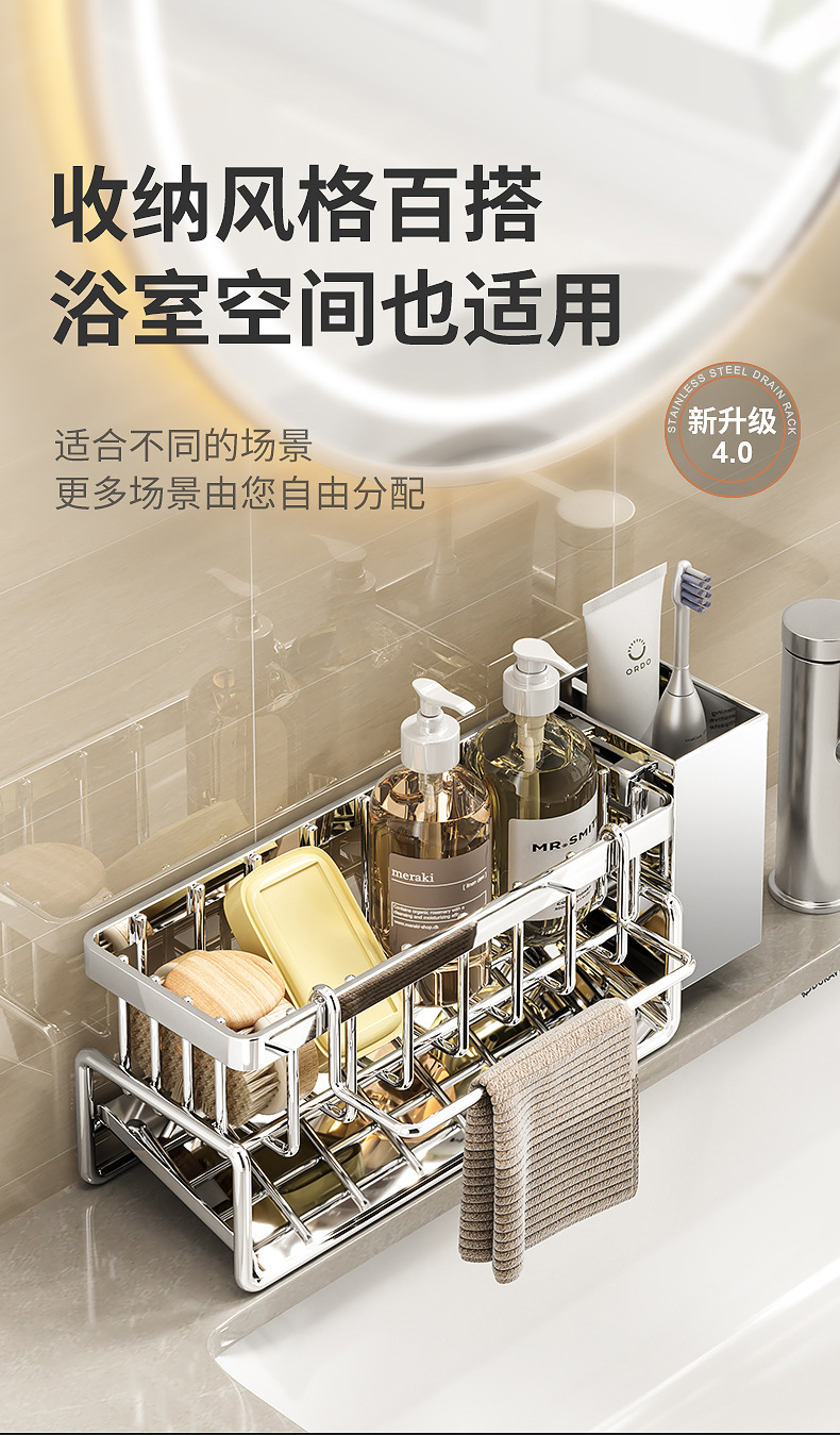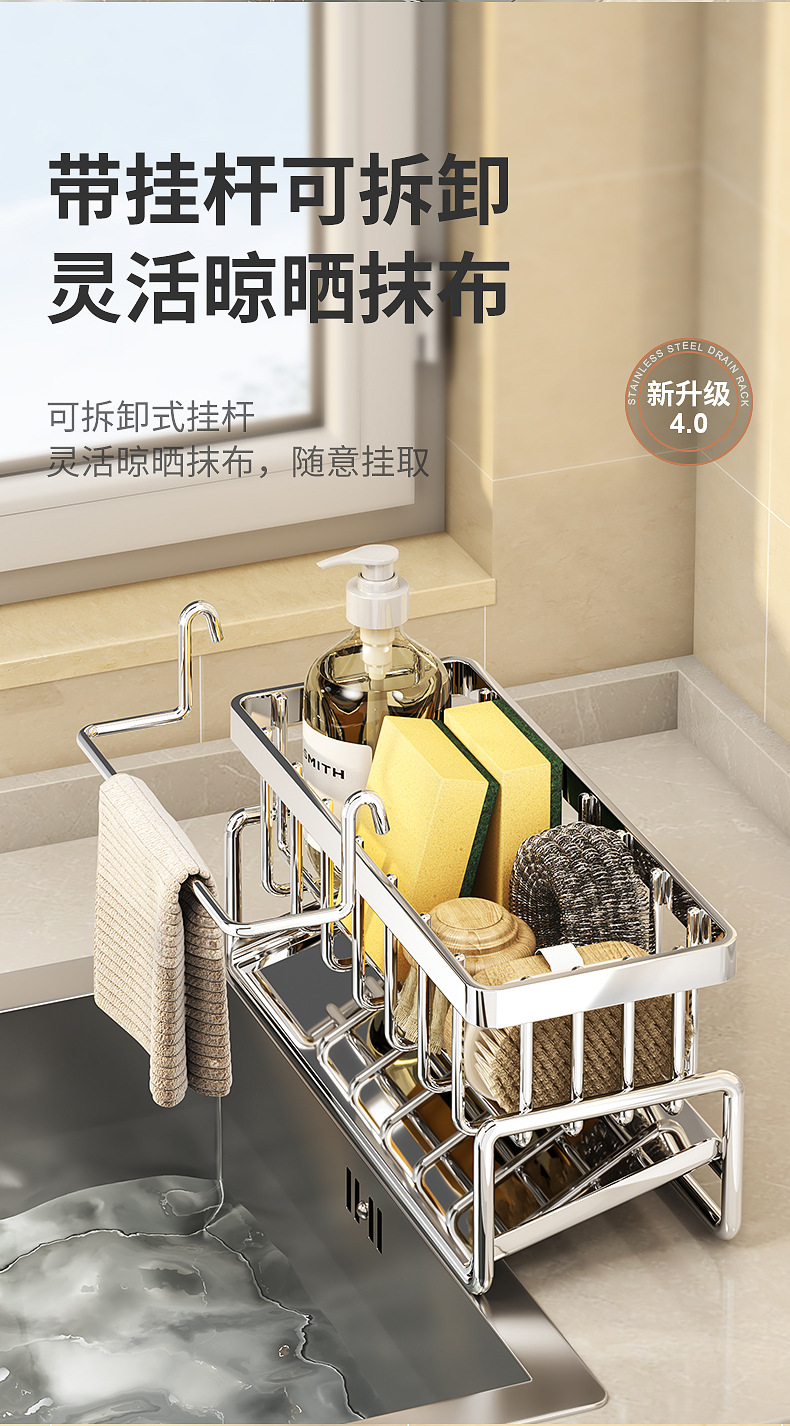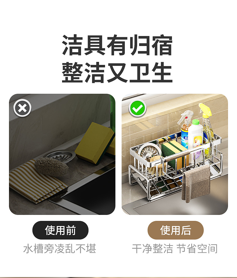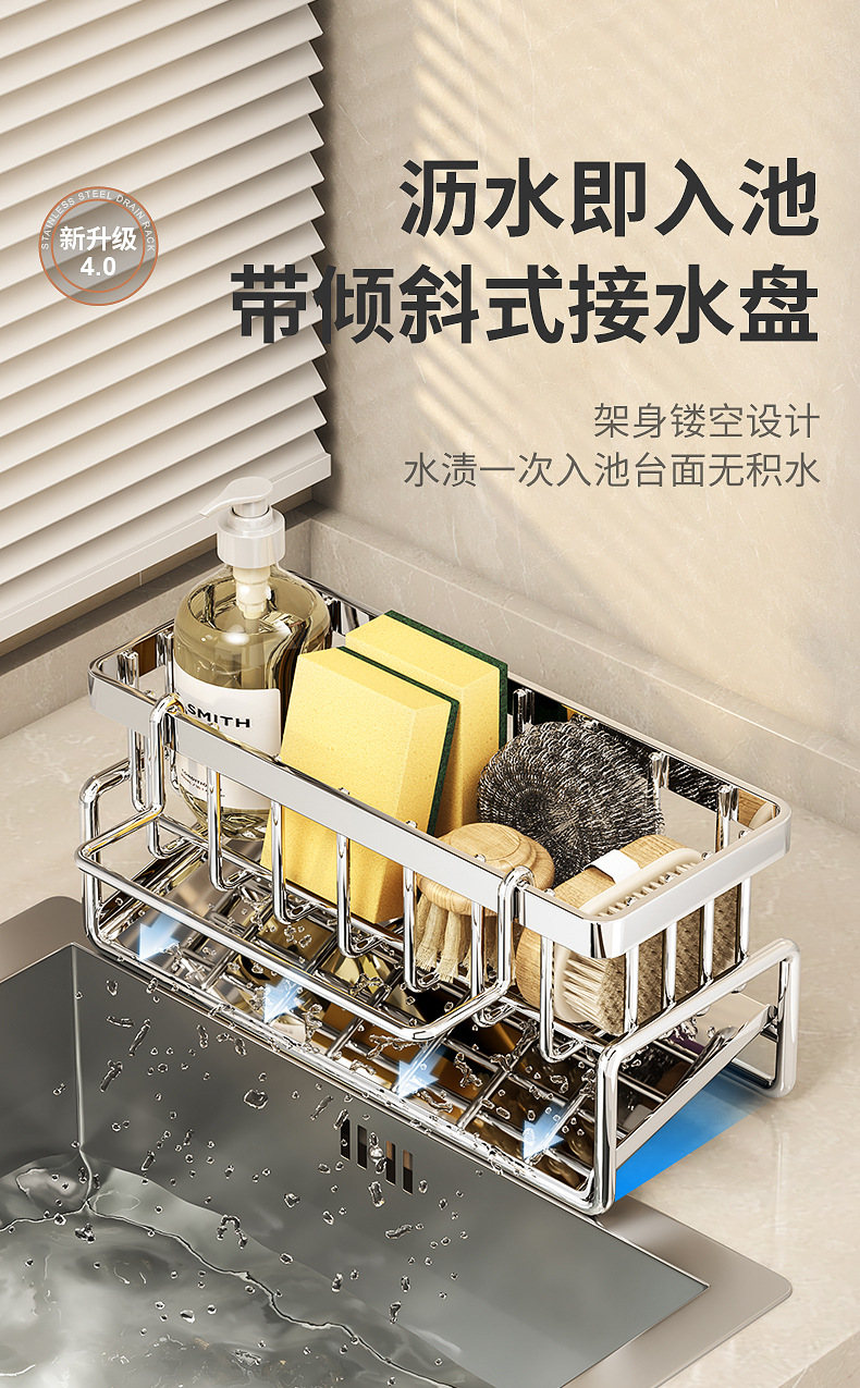 304不锈钢水龙头置物架厨房用品水池水槽收纳洗碗海绵抹布沥水架