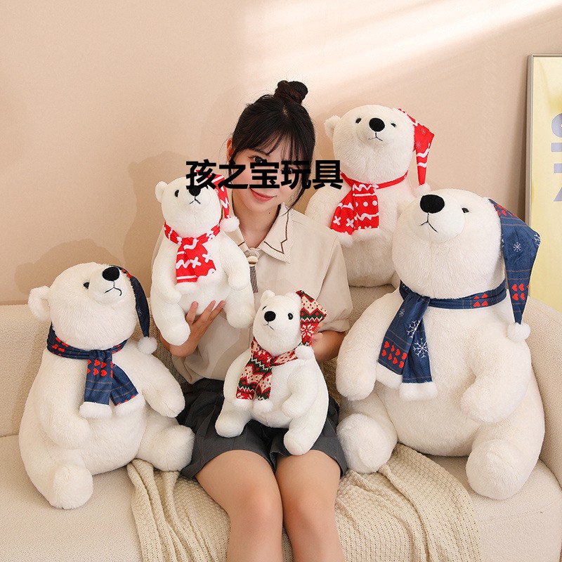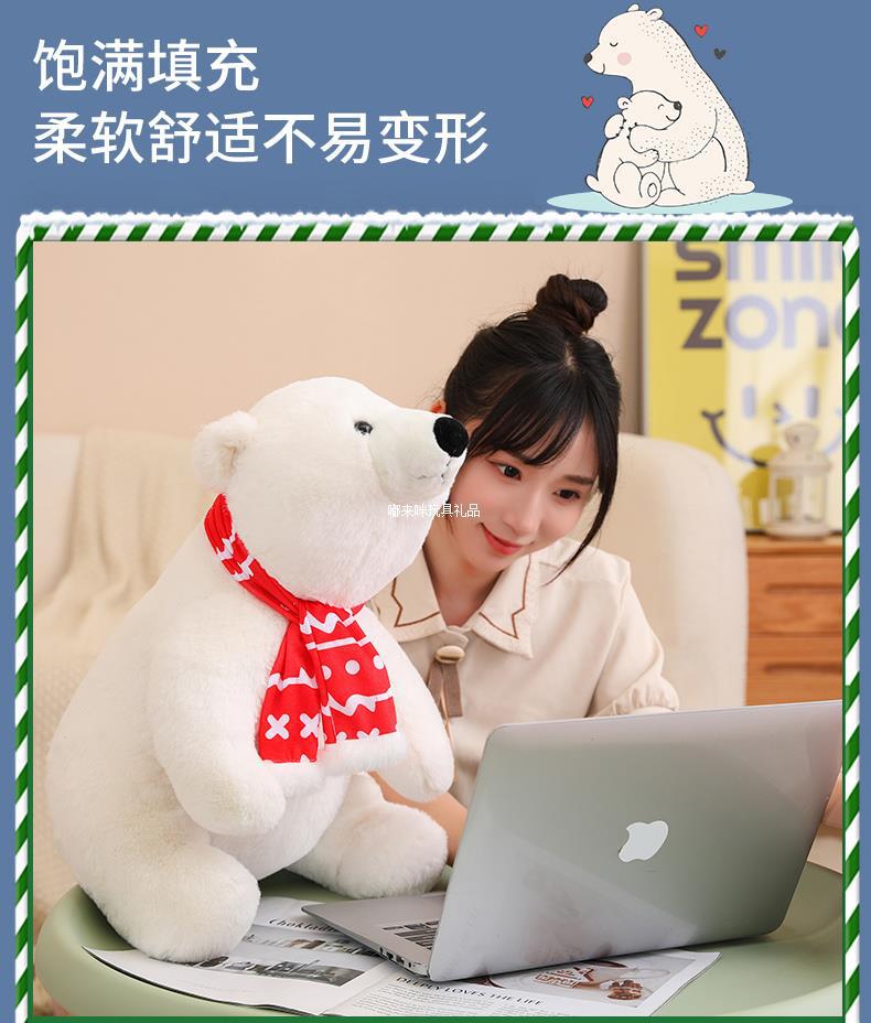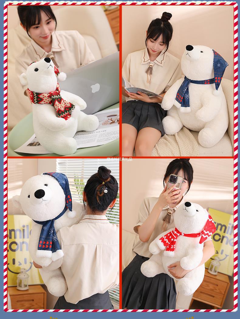 ホッキョクグマ公仔かわいいマフラー熊ぬいぐるみ抱き熊人形大白熊抱き枕クリスマスプレゼント