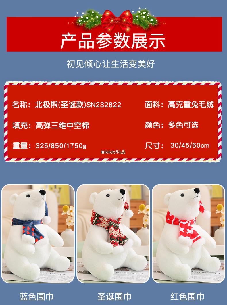 新品可爱北极熊公仔圣诞款跨境亚马逊毛绒玩具小熊玩偶圣诞节礼物
