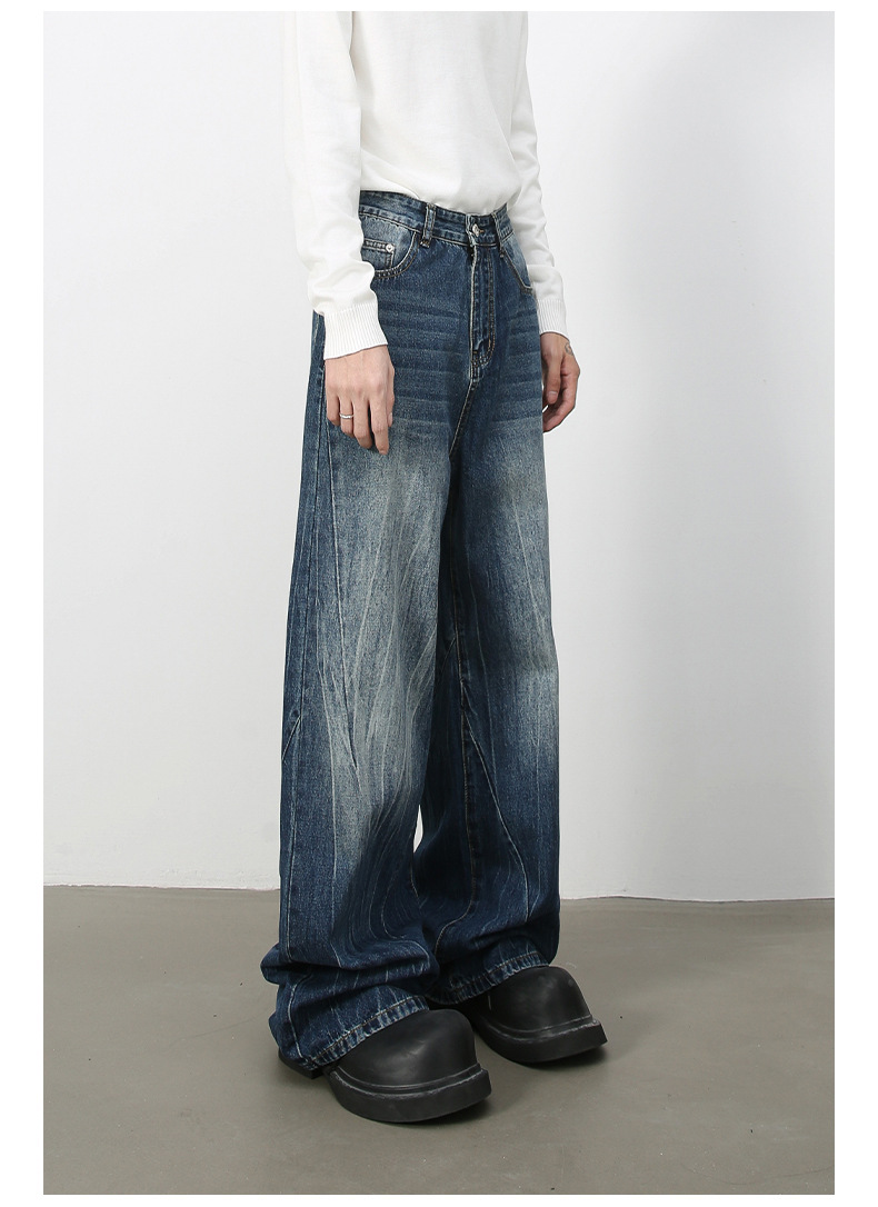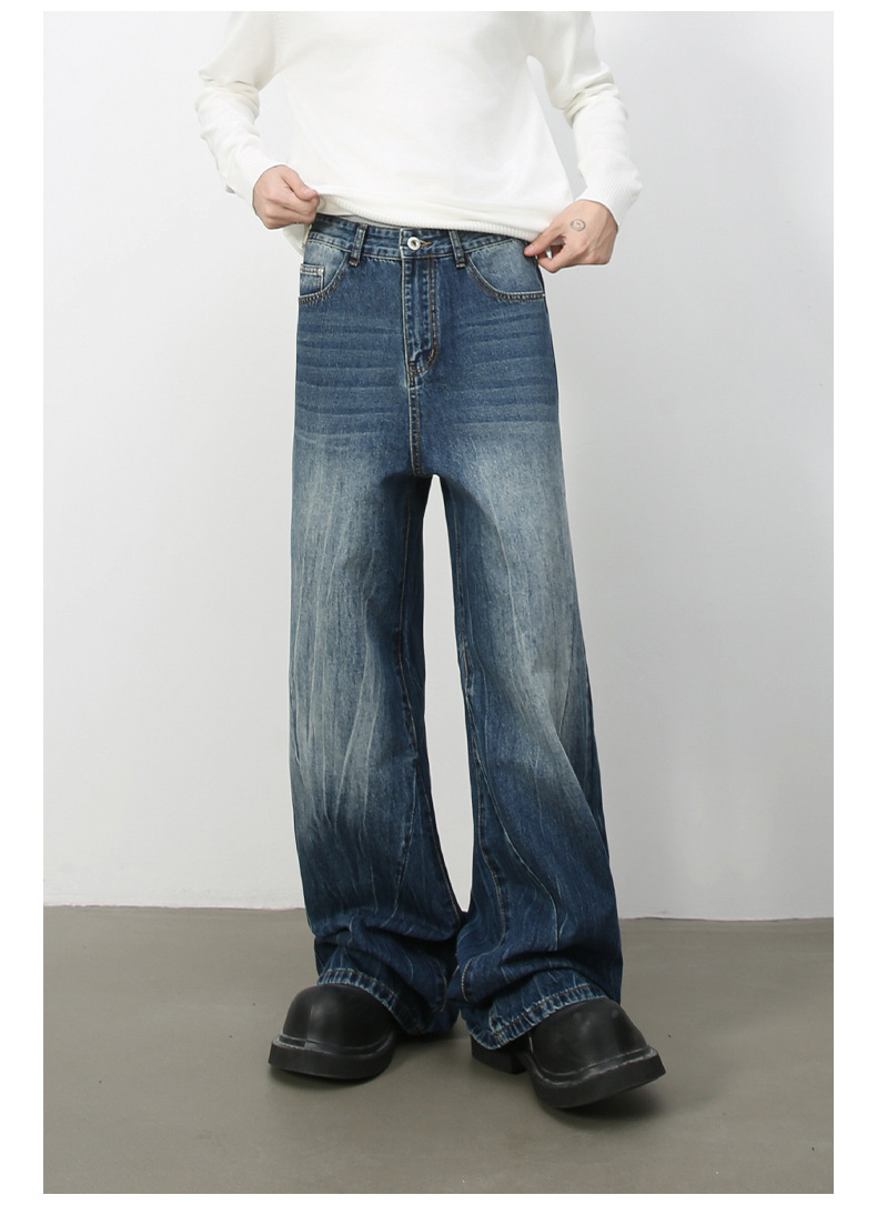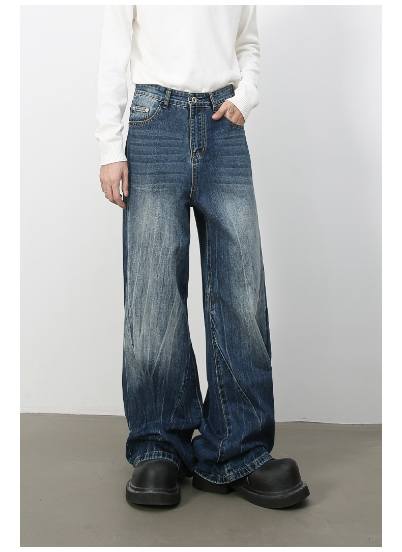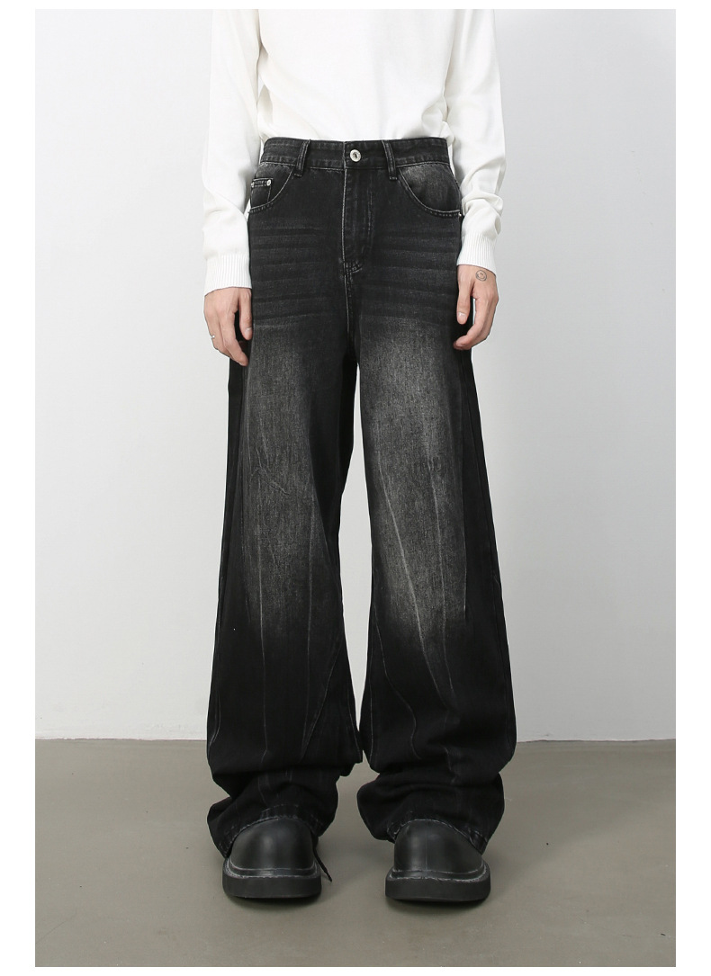 Nirbenデニム | 新商品韓国版個性ジーンズ男性直筒潮牌水洗いinsゆるい広脚長ズボン