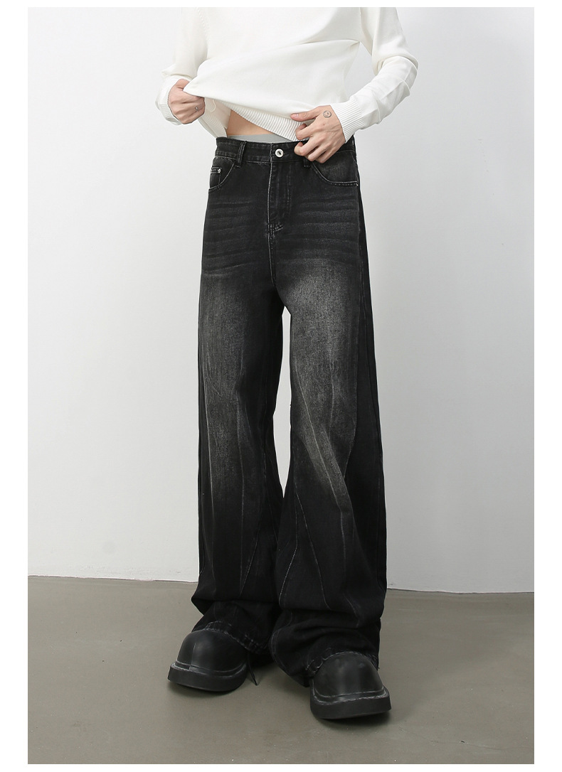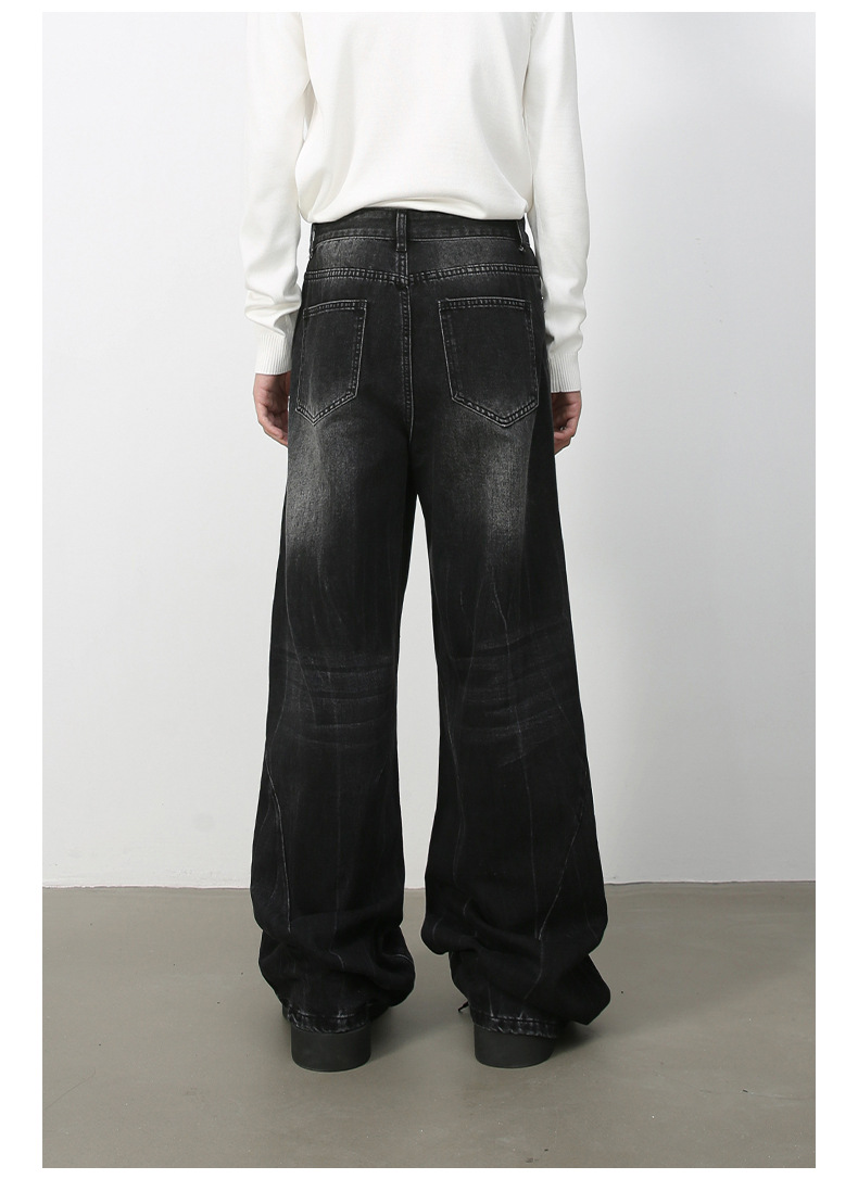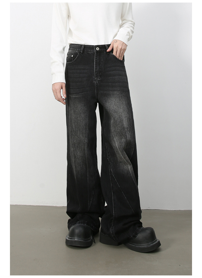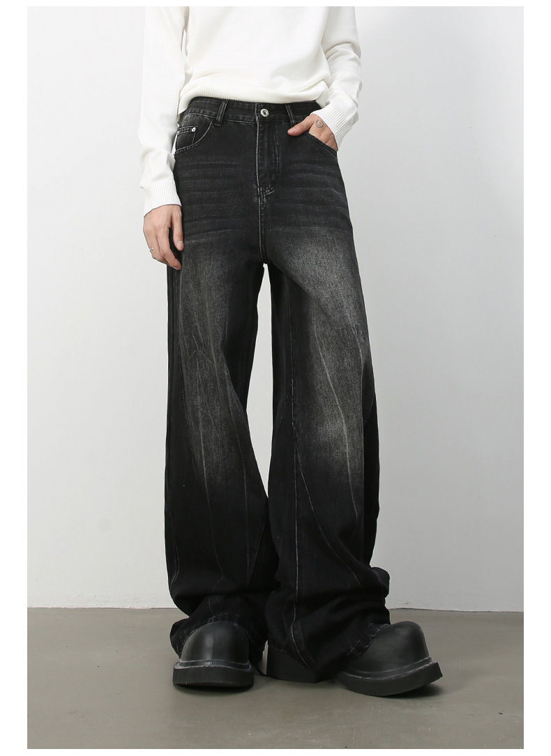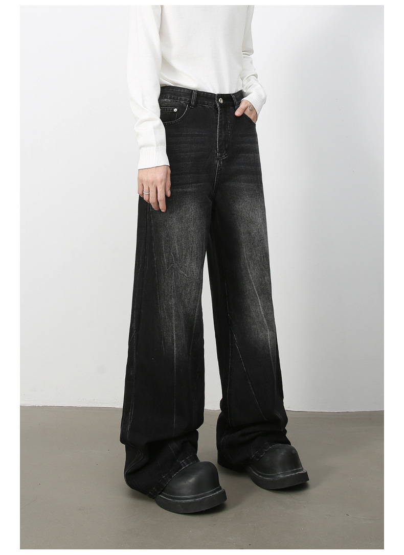 Nirbenデニム | 新商品韓国版個性ジーンズ男性直筒潮牌水洗いinsゆるい広脚長ズボン