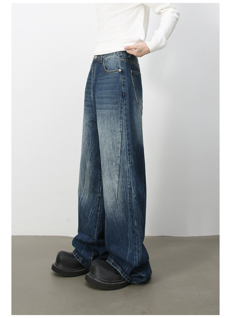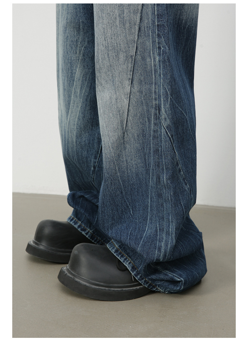 Nirbenデニム | アメリカのレトロなハイストリートのシワなデザイン感ジーンズ