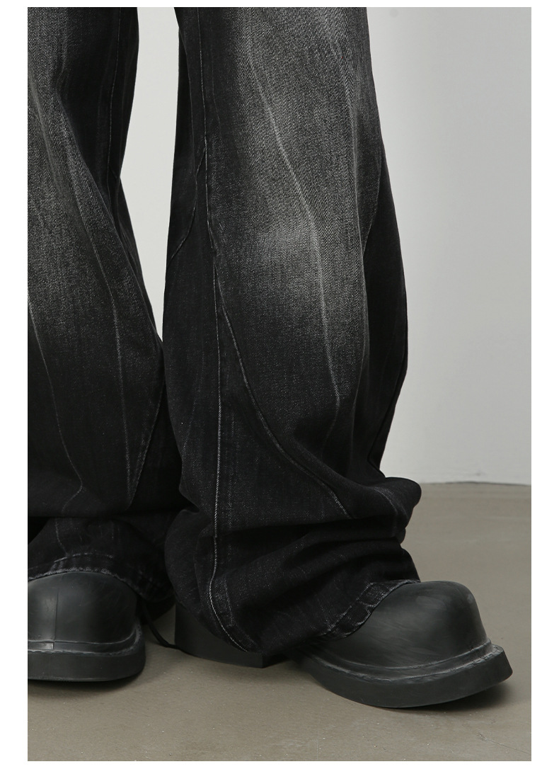nirben牛仔|美式复古水洗拼接弯刀牛仔裤男潮牌直筒宽松镰刀裤子