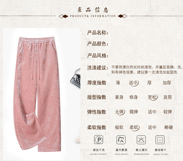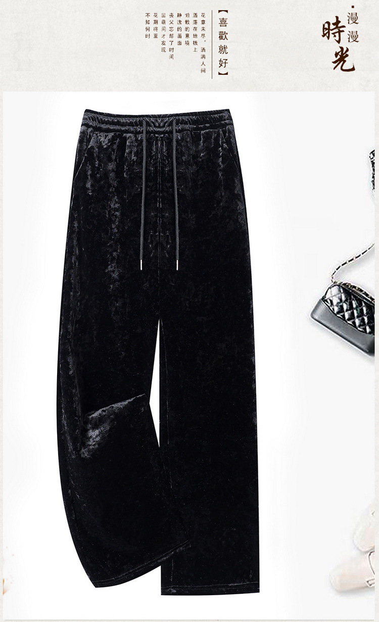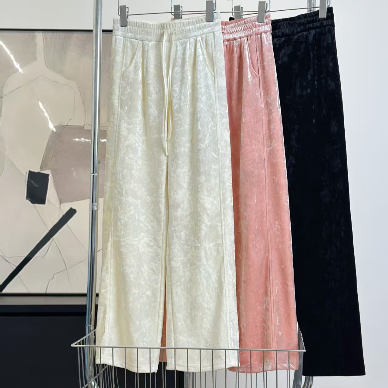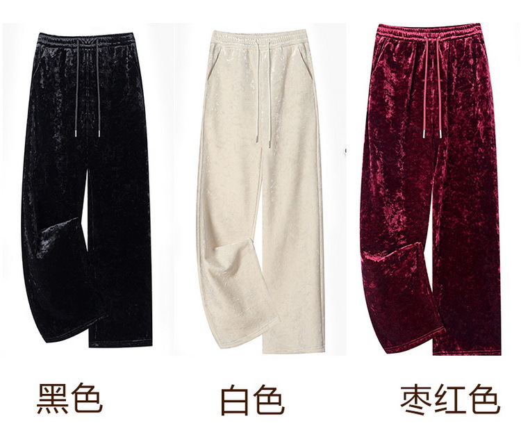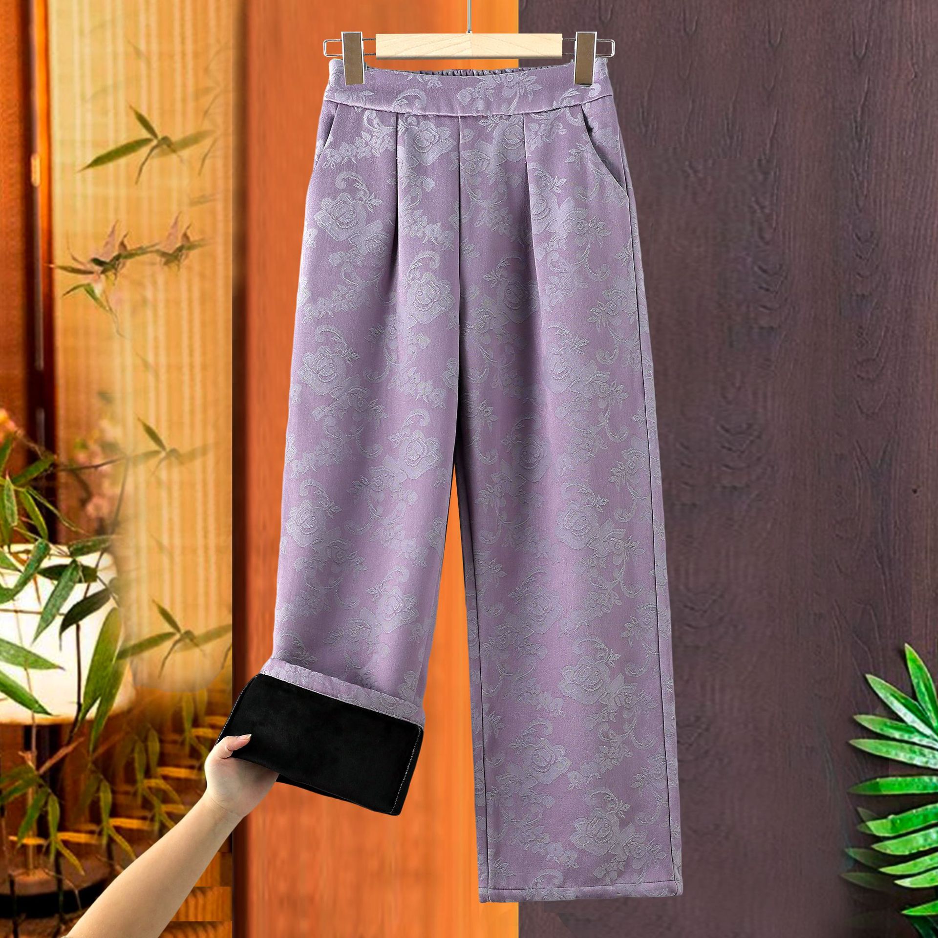 ベルベットは新しい中国風ベルベットの花の広いズボン2025冬の国風を厚くして痩せた高腰ストレートパンツの女性を見せた
