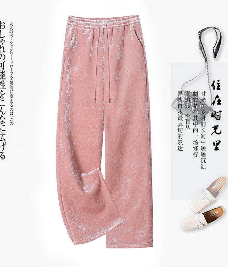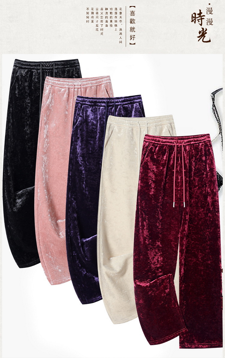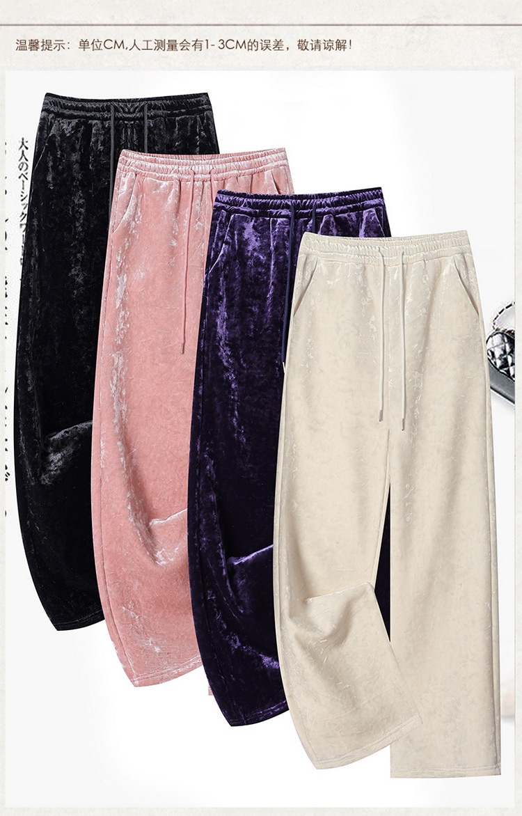 秋冬スタイルのベルベット保温ズボンの女性の国風ベルベットのストレートパンツは痩せた気質を見せている