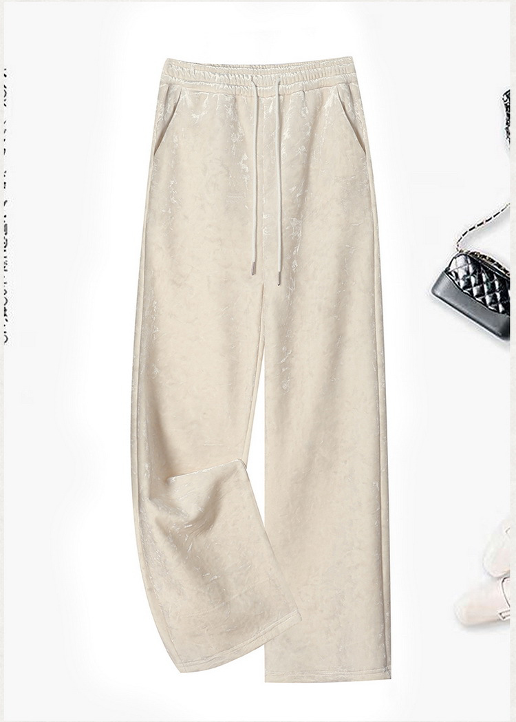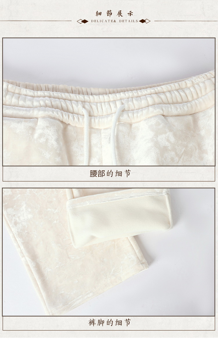 冬季加绒保暖长裤子女国风丝绒百搭直筒裤系带高腰显瘦垂感阔腿裤