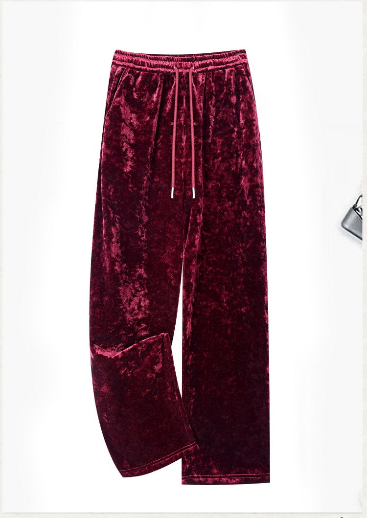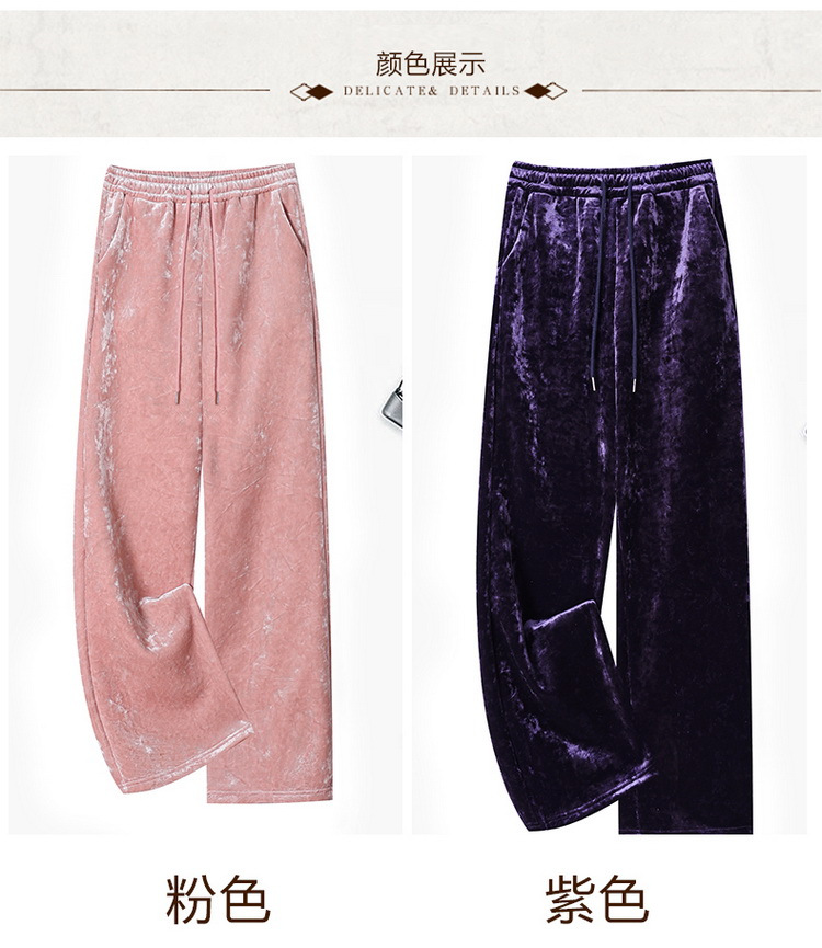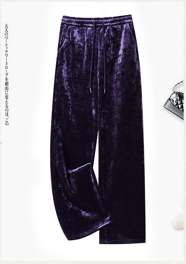 厚みのあるベルベットのパープルハイウエストベルベットワイドレッグパンツ女性用2025秋冬ドレープハイウエストルーズスリミングカジュアルパンツ