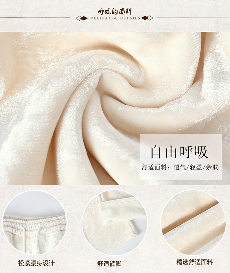 新しい中国式の蝶のエンボスのベルベットのズボンの女性の気質の百合の垂れ下がった感じの狭い版の広腿のズボンはゆったりしていて痩せています。
