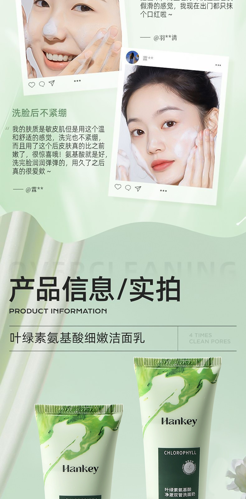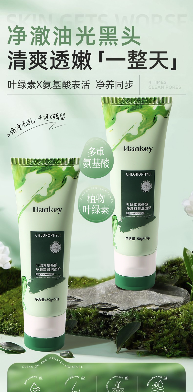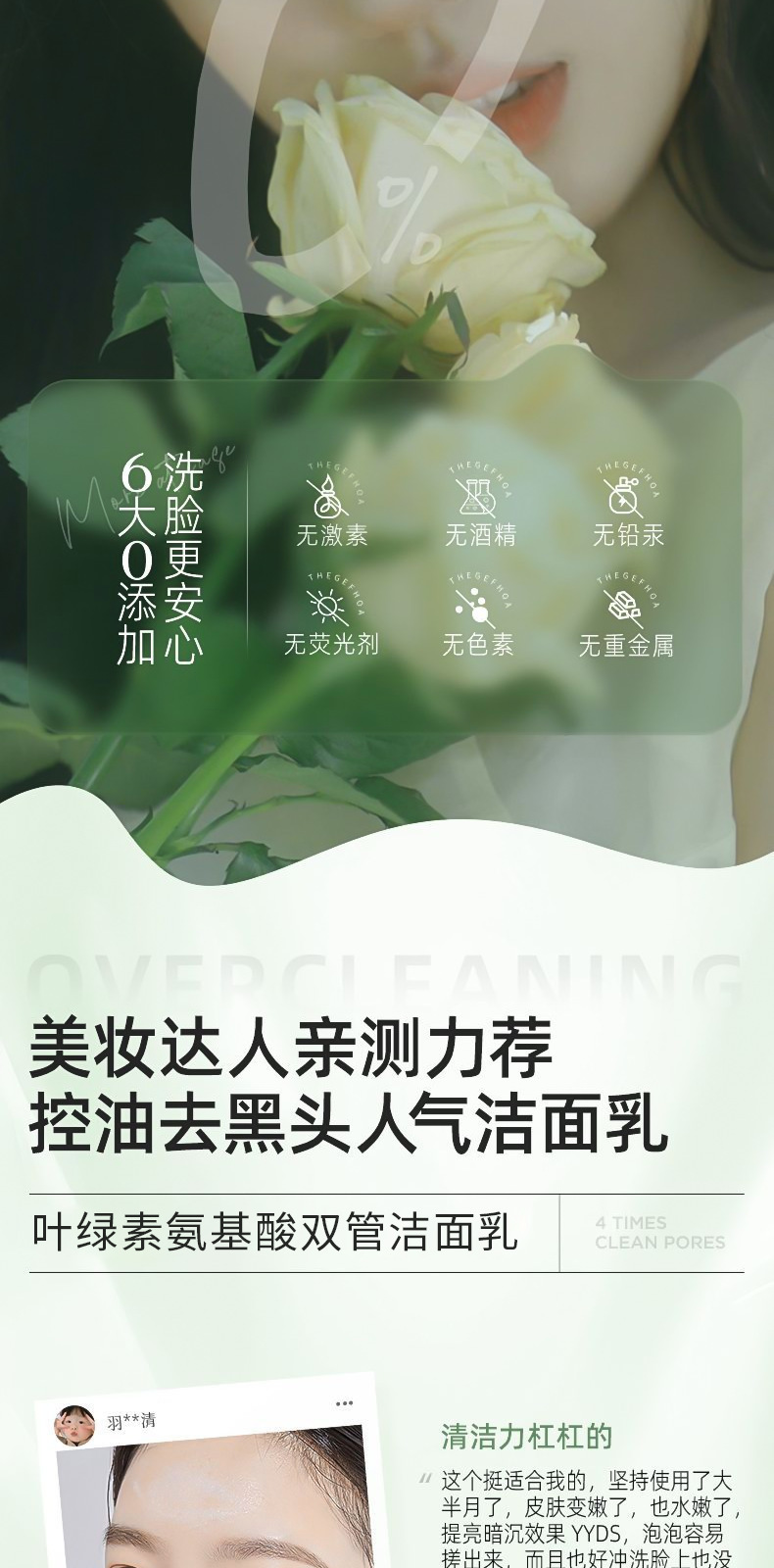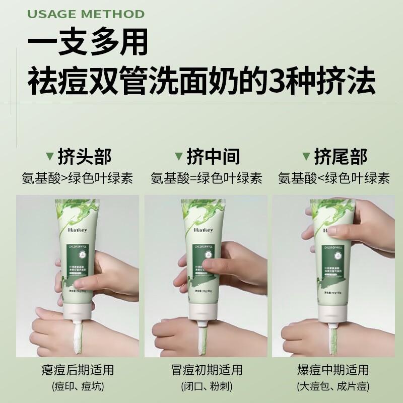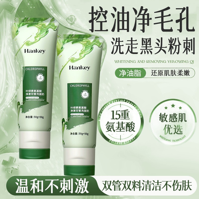 韓紀葉緑素アミノ酸浄徹双管洗顔料50g 50g/箱温和泡清浄補水保湿