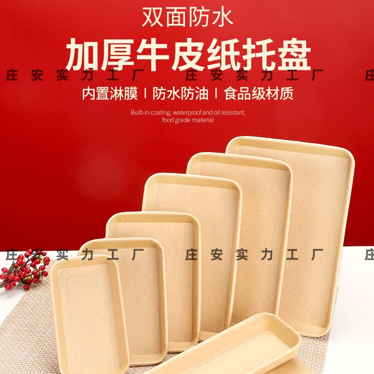 加厚牛皮纸托盘一次性餐盘长方形方盘无盖水果盘子碟子食品级烧烤