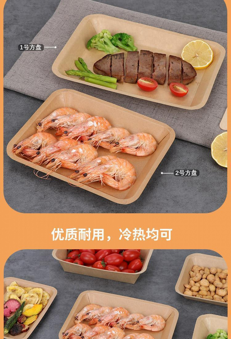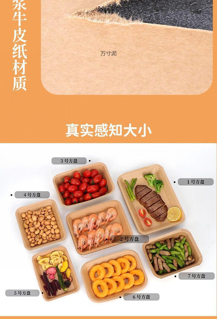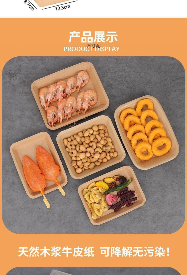 一次性牛皮纸餐盘方形小吃零食托盘生鲜盘加厚水果烧烤盘餐盘环保