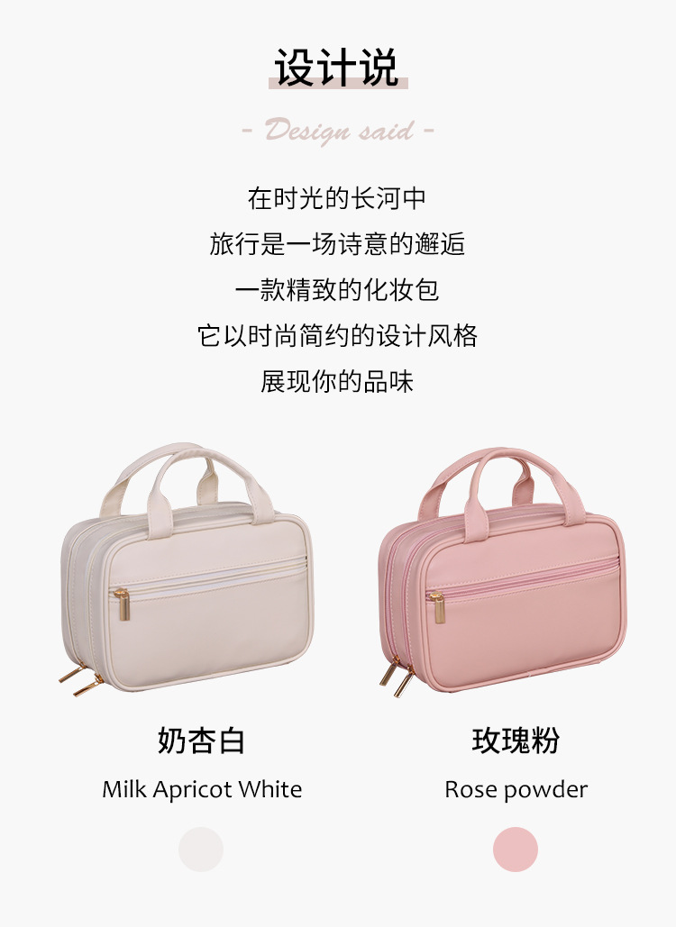高颜値ダブルジッパーポーチ大容量ポータブル出张旅行高级感化粧ブラシ洗面バッグ収纳袋