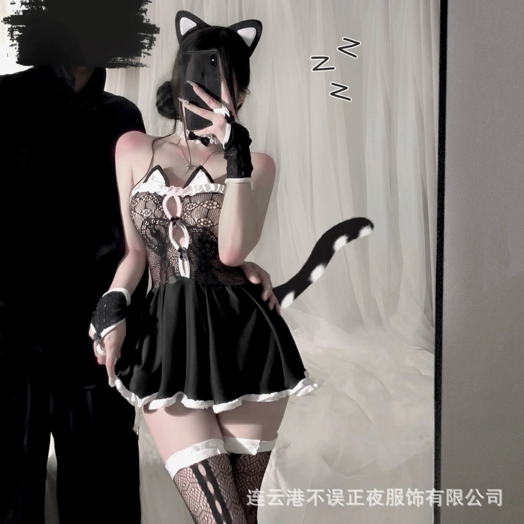 夜の情緒下着のセクシーな猫の制服の純粋な欲望のメイドのスーツの誘惑の小さい胸のレースのパジャマqq ny
