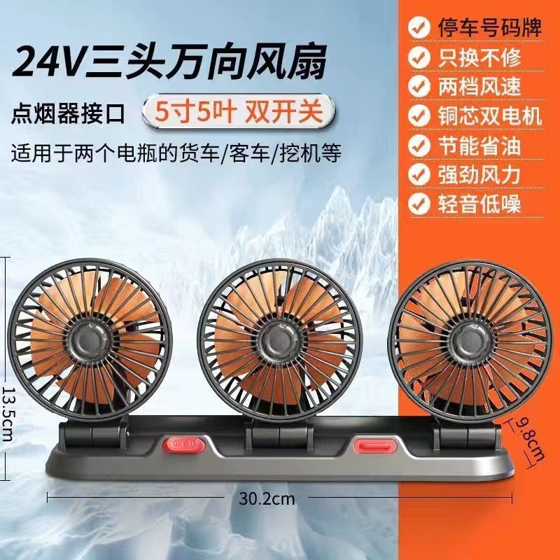 車載扇風機24v大型トラック専用12ボルトバン強風超静音三頭車用usb扇風機