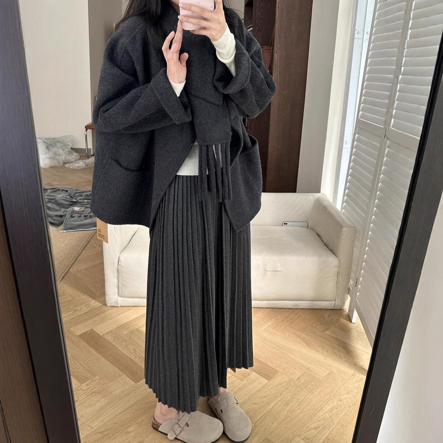 大码胖韩系穿搭中长半身裙女春秋新款梨形身材高腰垂感百褶裙子