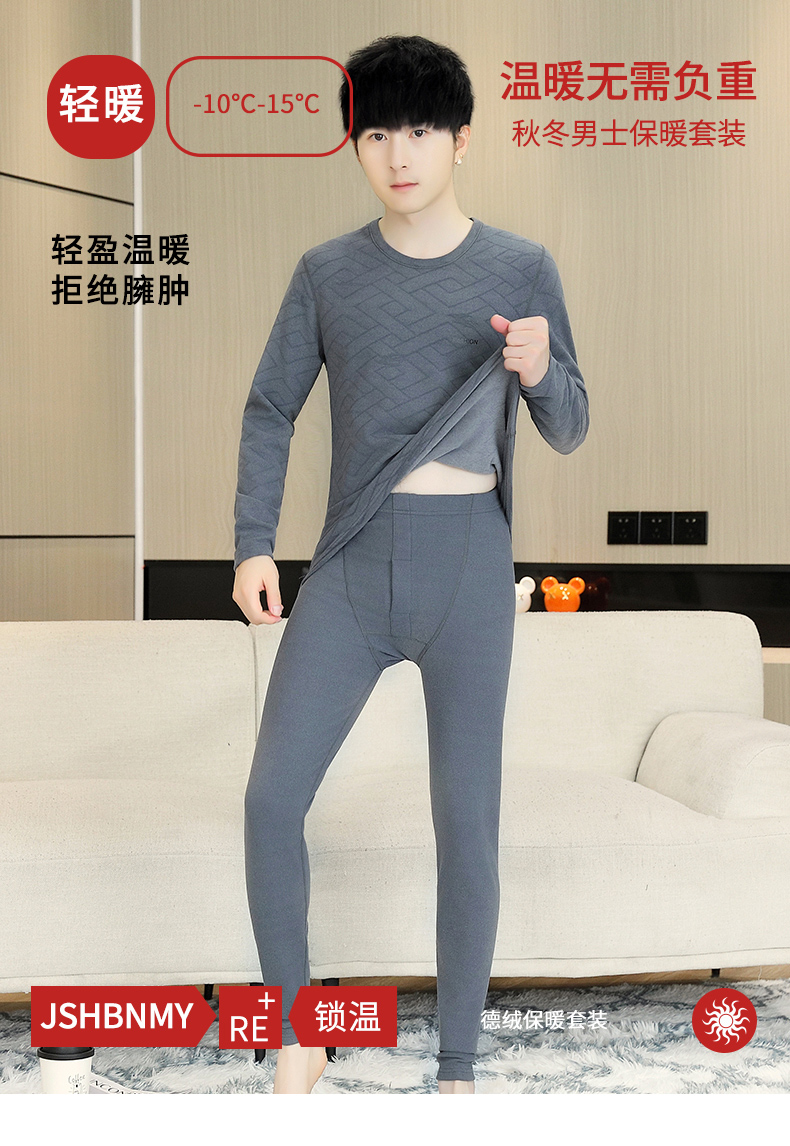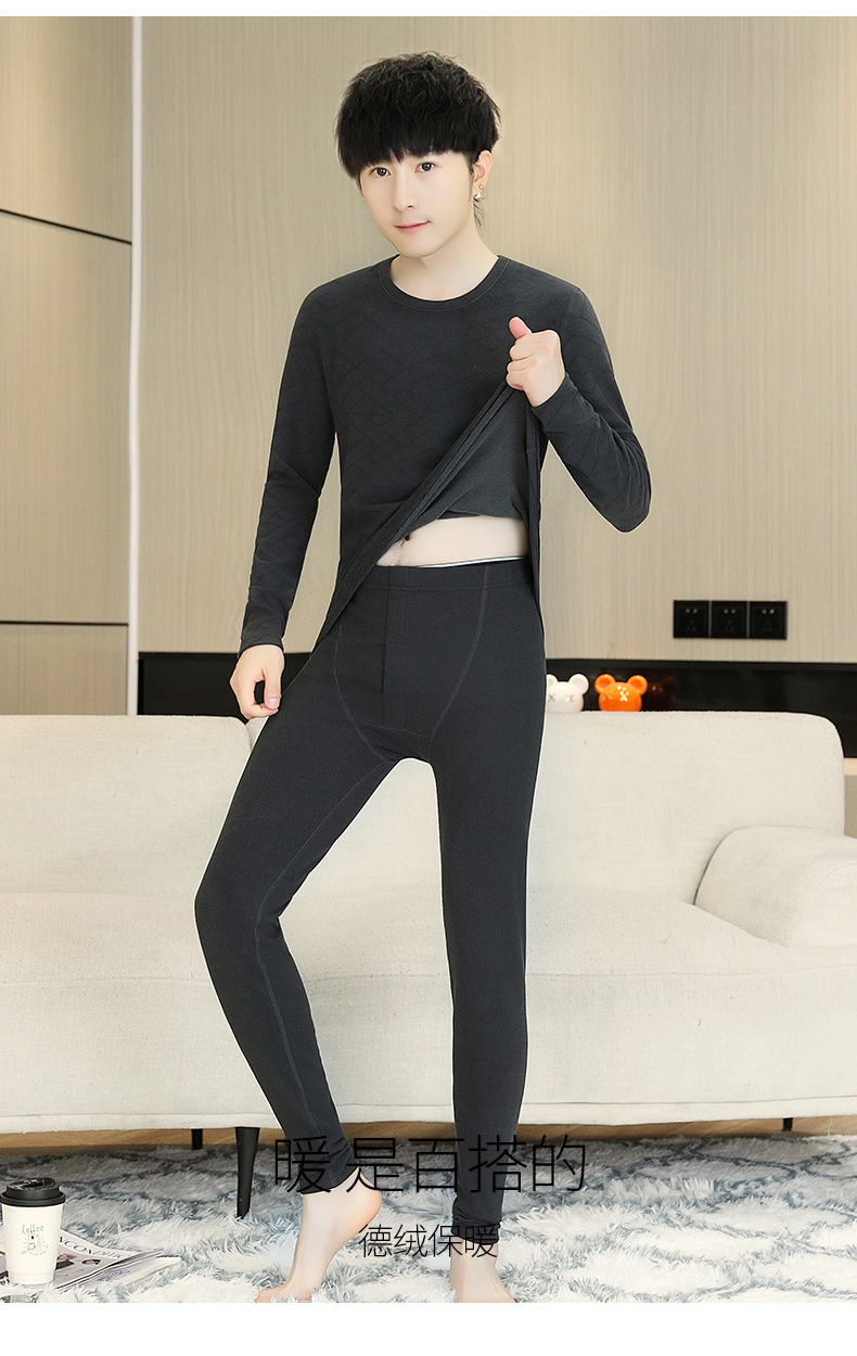 徳絨毛保温下着男性セット2024新型青少年高校大学生ベルベットダウン秋衣秋ズボン