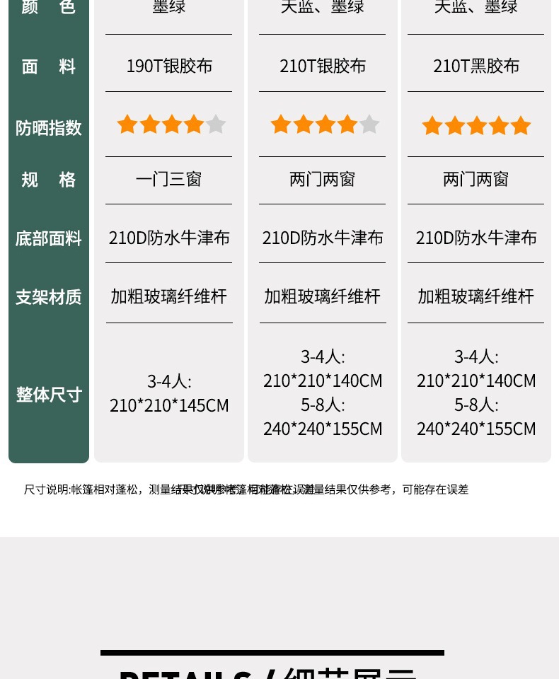 源工場テント屋外折り畳み携帯キャンプ夜キャンプ増厚防雨日焼け止め黒ゴムセット