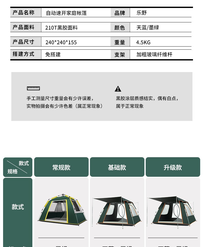 テント屋外ポータブルキャンプ夜防雨日焼け止め厚手全自動速開キャンプ全セット装備屋外
