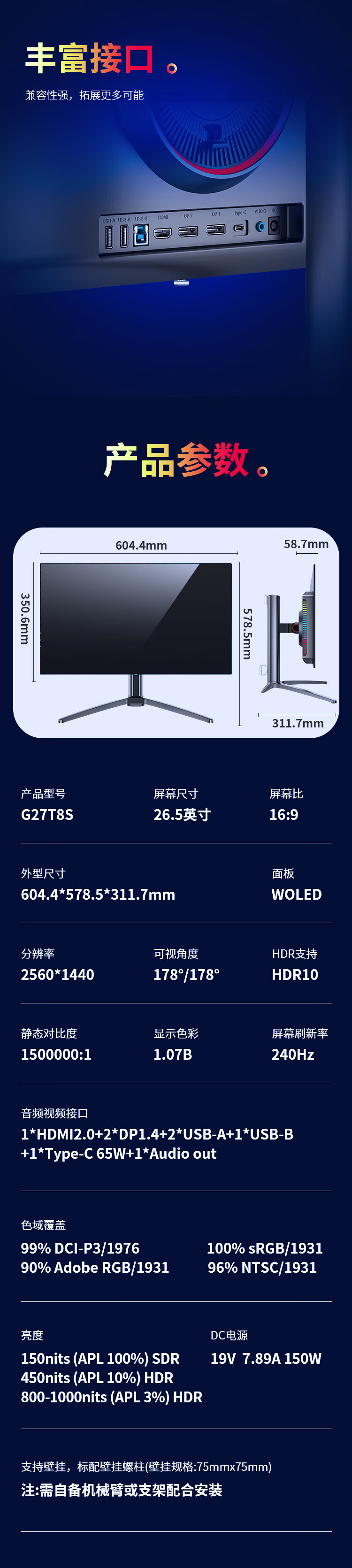 サイズ G27T8S 26.5inch 2k 240hz 0.03ms Type-c