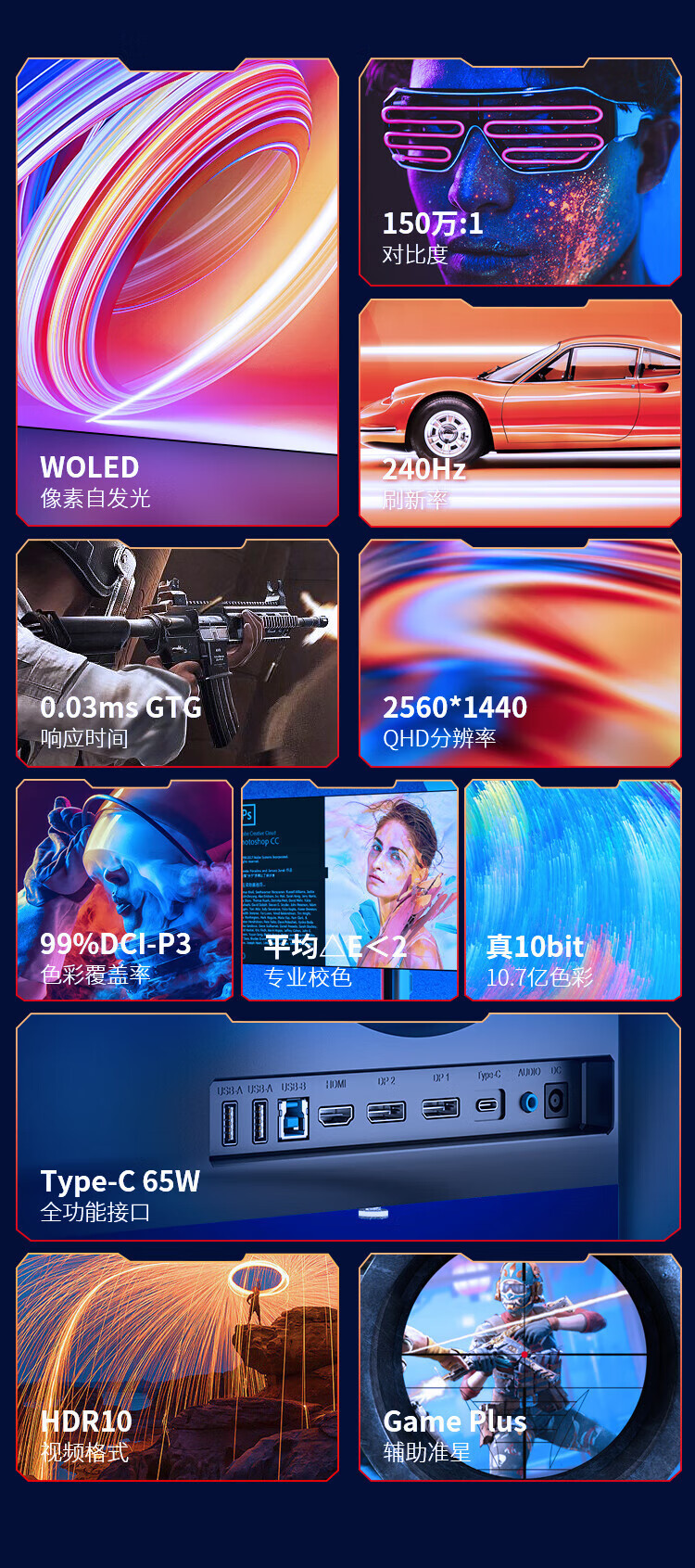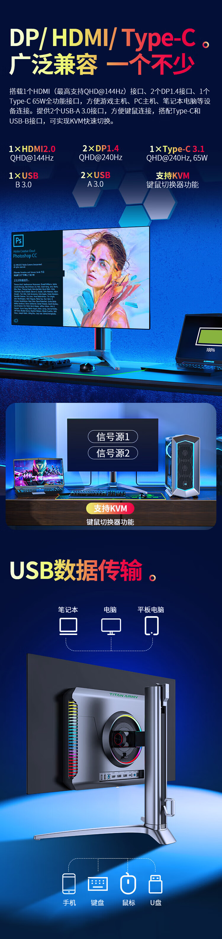 タイタン軍団g 27t 8s 5.5インチOLED 2K 240hz 3.03ms電気競争ゲームモニター画面
