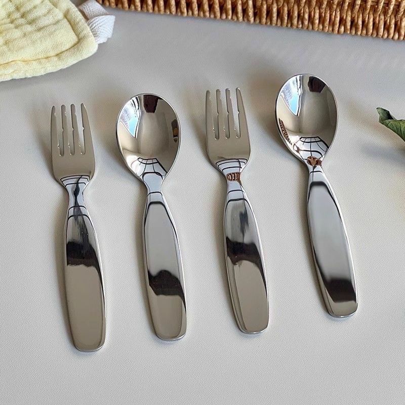 不锈钢儿童勺子叉子宝宝勺母婴辅食喂养勺小汤匙蛋糕甜品勺水果叉
