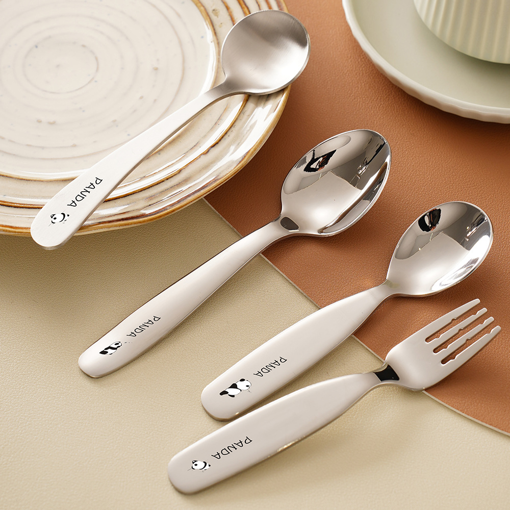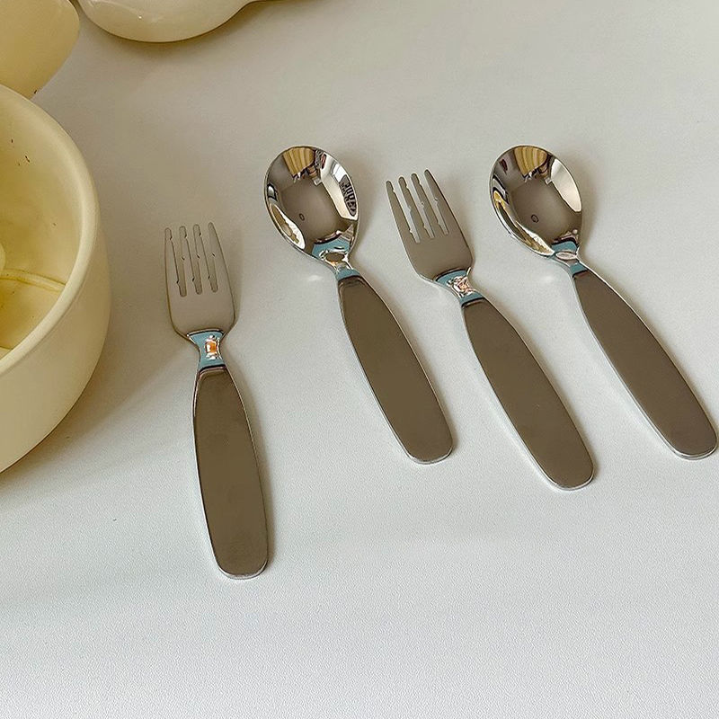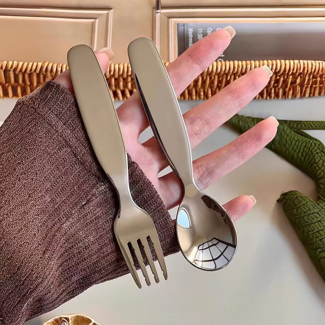 不锈钢加厚宽柄叉勺圆嘟嘟甜品勺家用宝宝米饭勺水果叉儿童勺套装