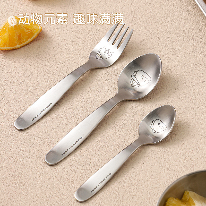304ステンレス子供食器補助食スプーンフォーク漫画模様かわいい動物レーザー萌え趣味色落ちしない
