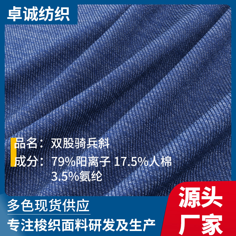 双股骑兵斜仿牛仔面料 TR阳离子仿牛仔 305g针织牛仔裤面料