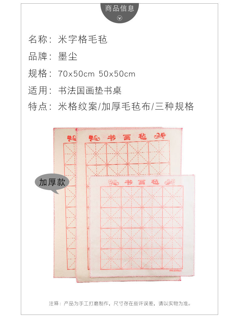 厂家直销书画毡加厚米字格绘画垫布毛笔书法毛毡垫书画专用毛毡