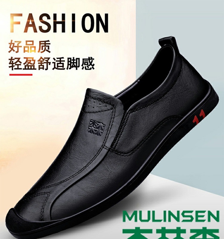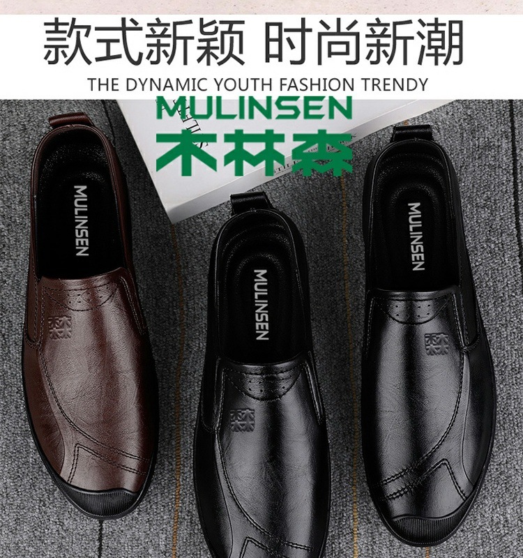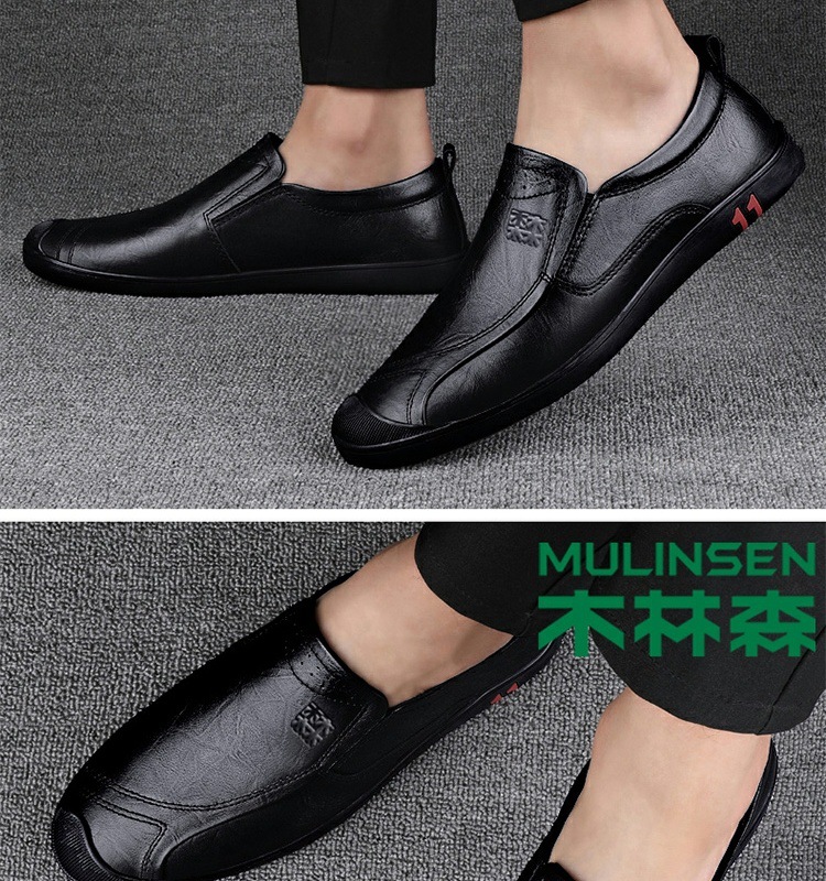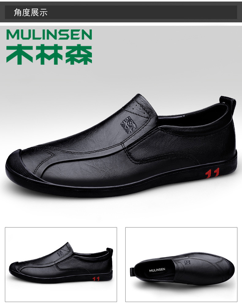 木林森男靴春の新型真皮通気性父の柔らかい底の柔らかい皮の正装ビジネスカジュアル靴男黒
