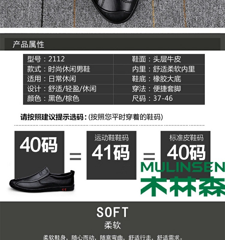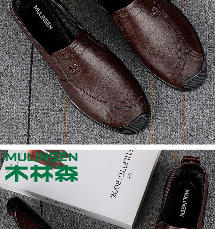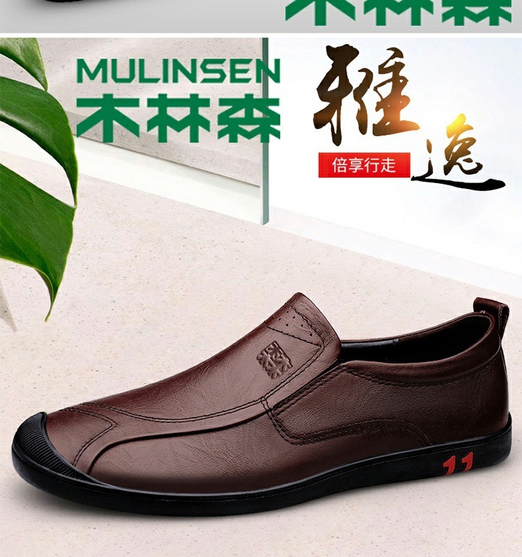 木林森革靴男性は夏に柔らかい底を踏んで通気してカジュアルな靴を履いている男性の真皮には中年の父親の靴がついている