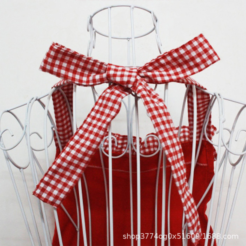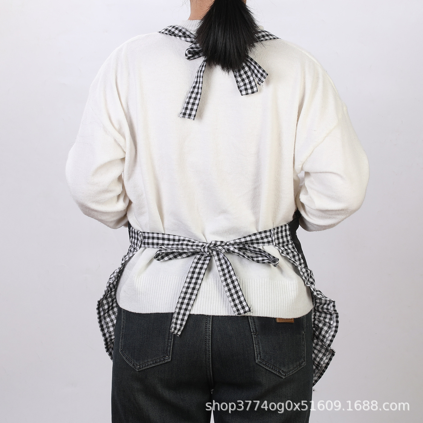 クロスボーダーレトロエプロン キッチン料理掃除メイド用 蝶結び飾り付きエプロン 防汚調節可能エプロン
