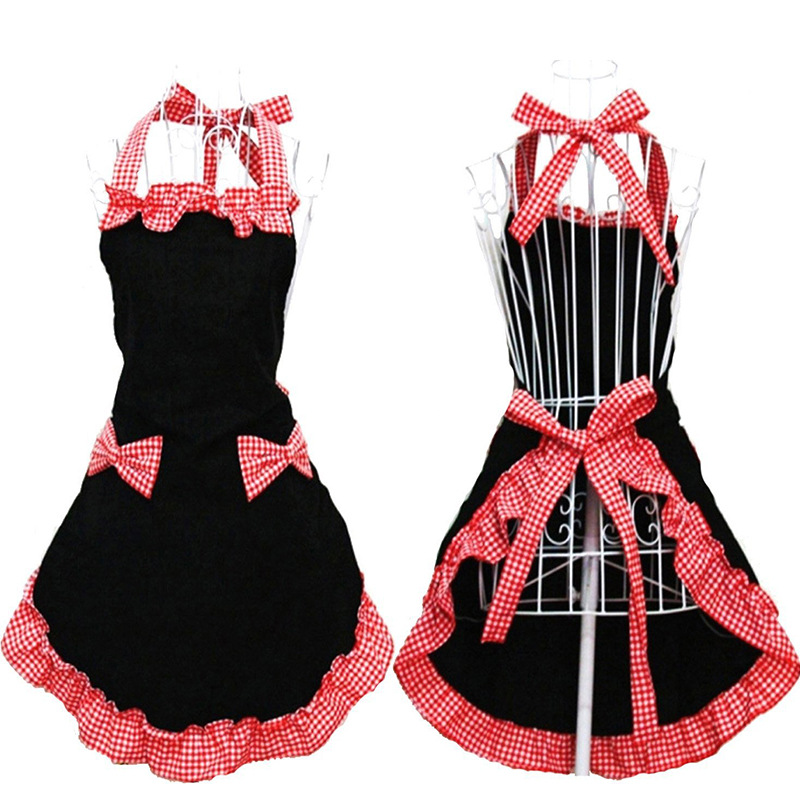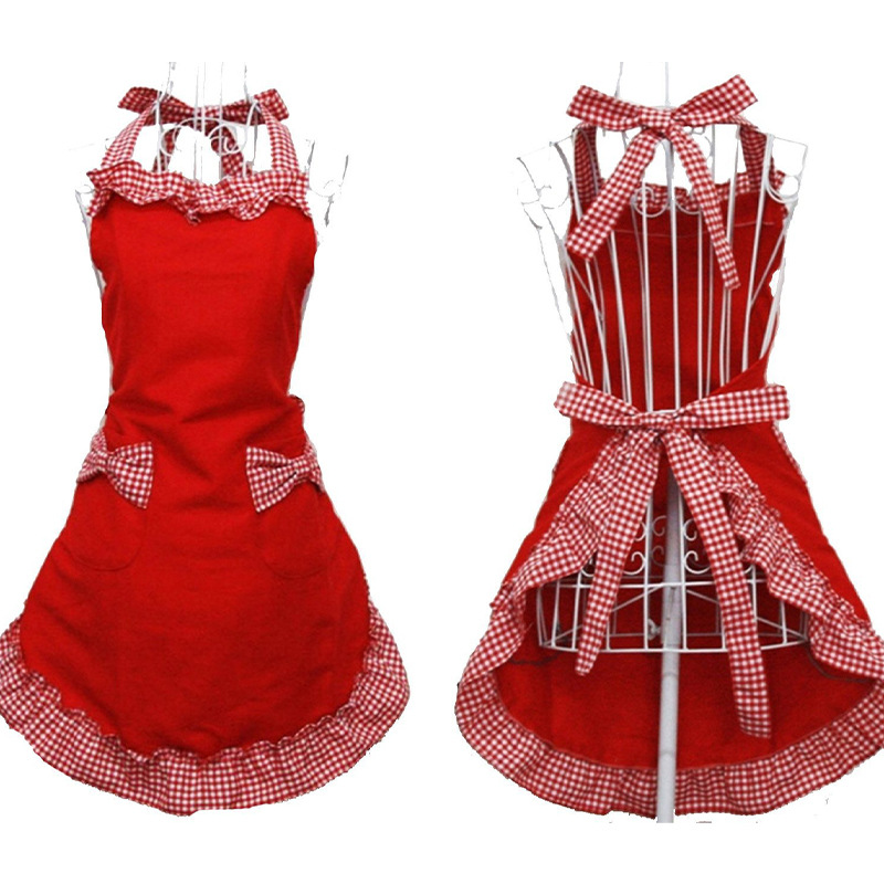 Amazon かわいいリボンロングエプロンホームキッチン家庭用ガールエプロンホルターネックメイドエプロン卸売