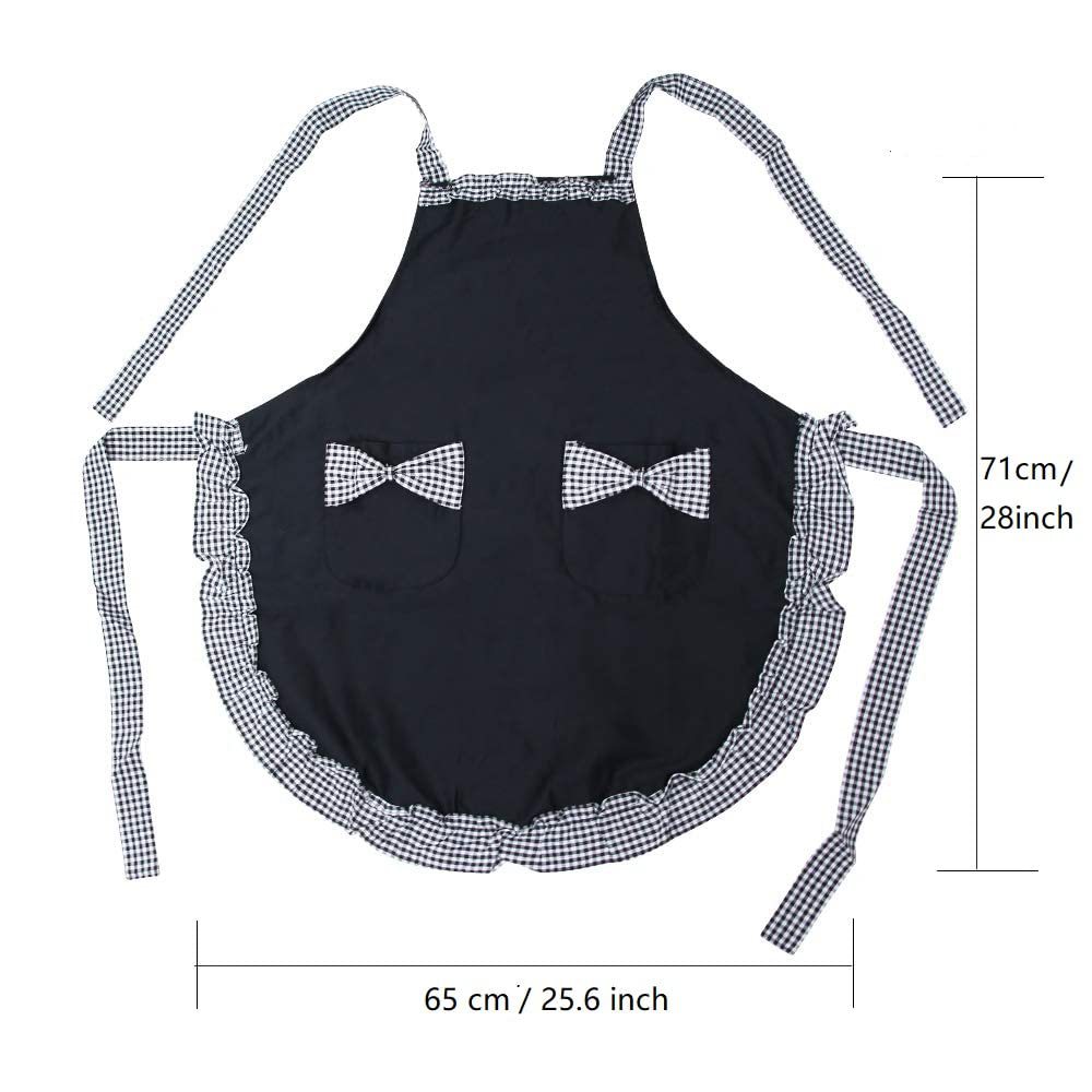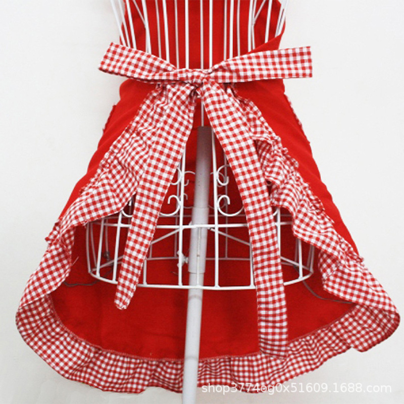 アマゾン制服エプロン防汚調節可能なチェック柄リボンレースエプロンレストラン花作業服エプロン