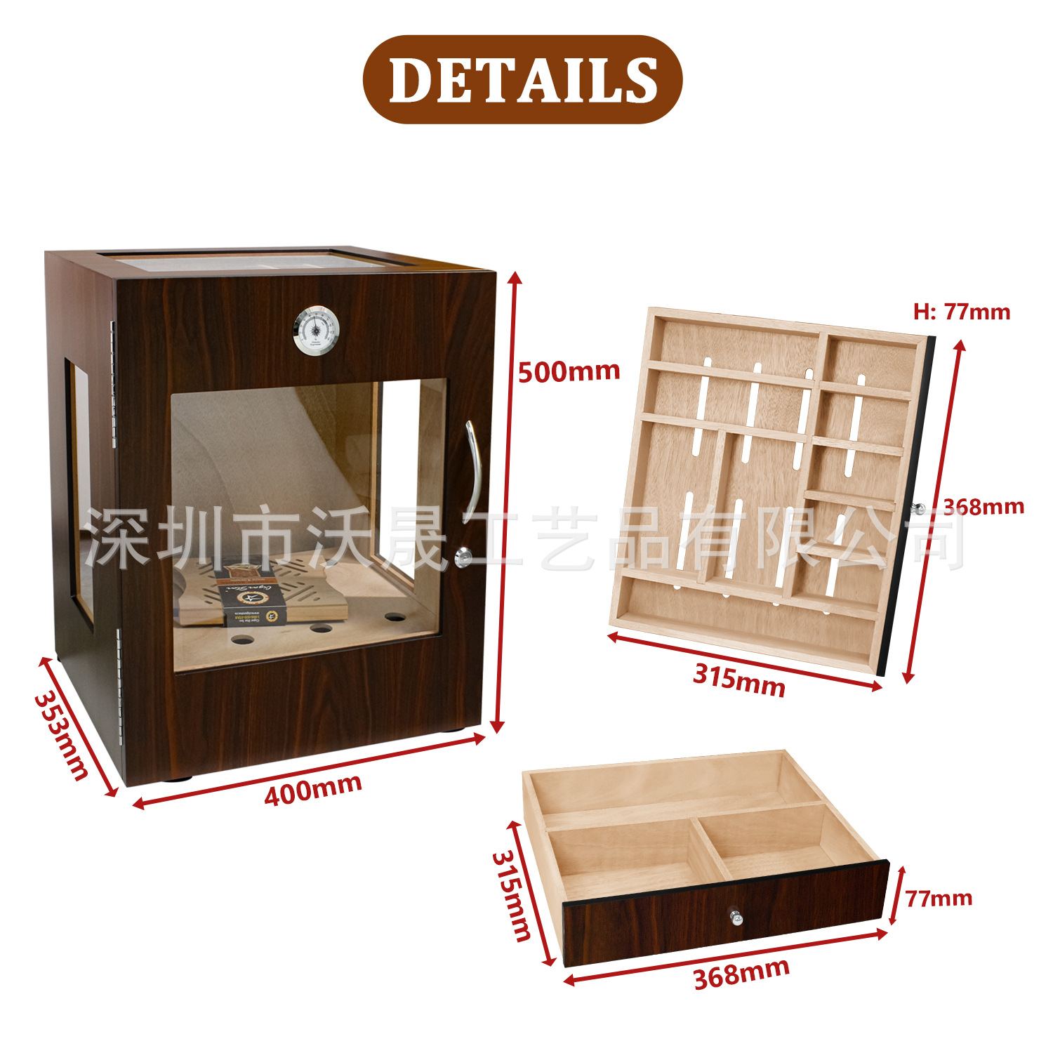 アメリカの古典的な三ポンプ電子湿度計小型シガーガラス展示キャビネット保湿キャビネット