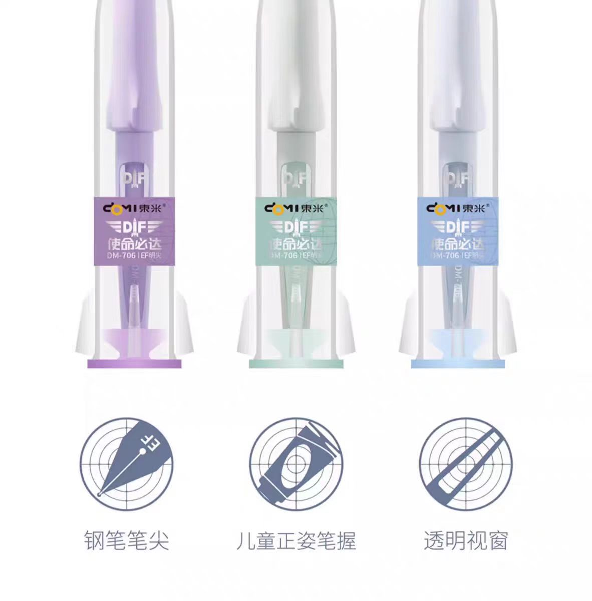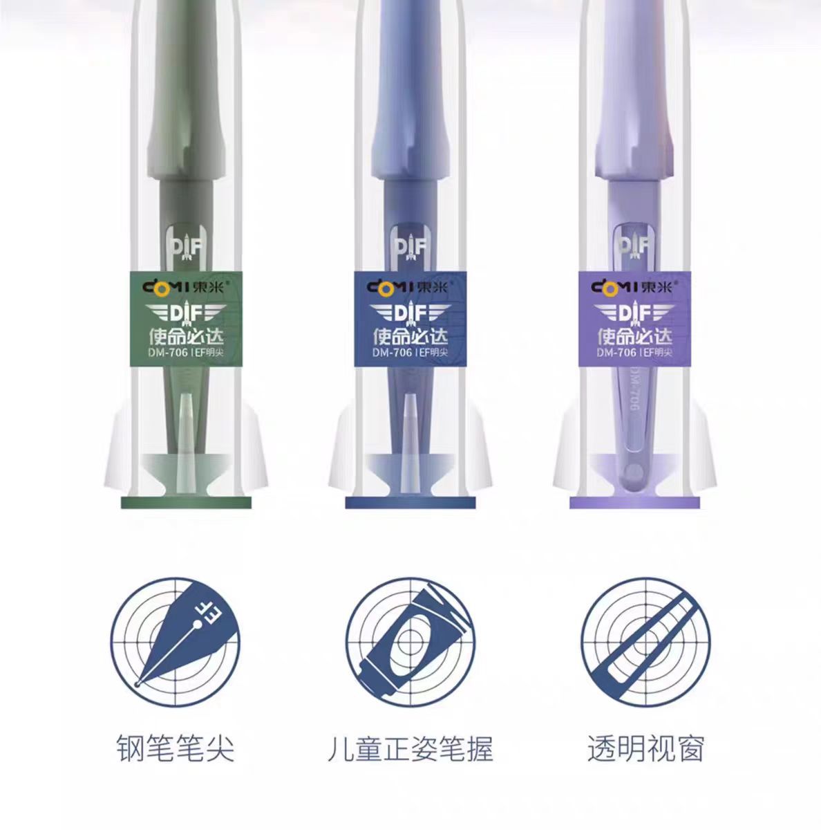 东米706使命必达儿童正姿钢笔EF明尖可换墨囊小学生练字专用纯蓝