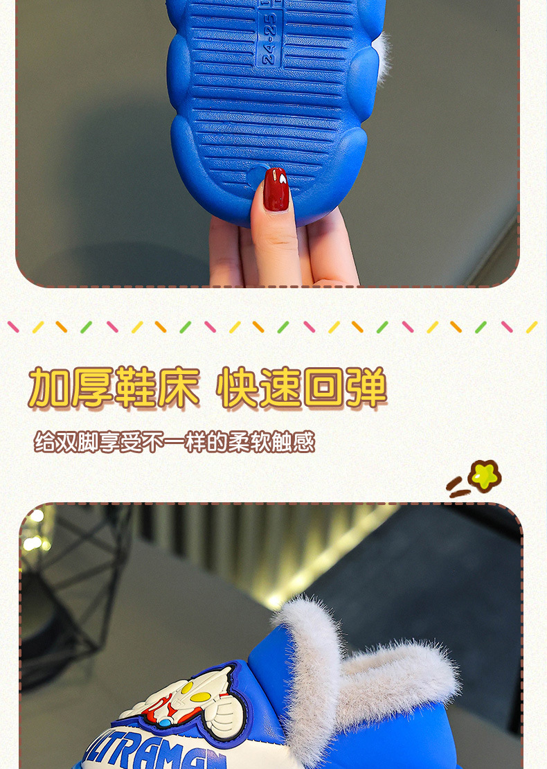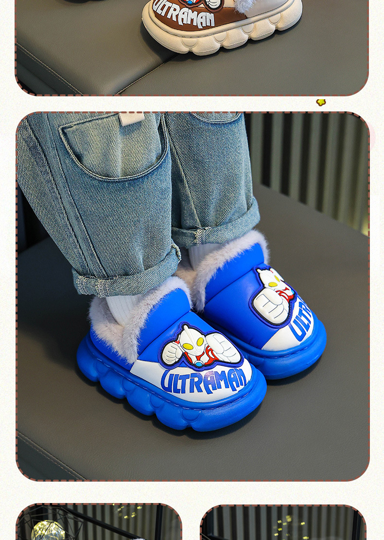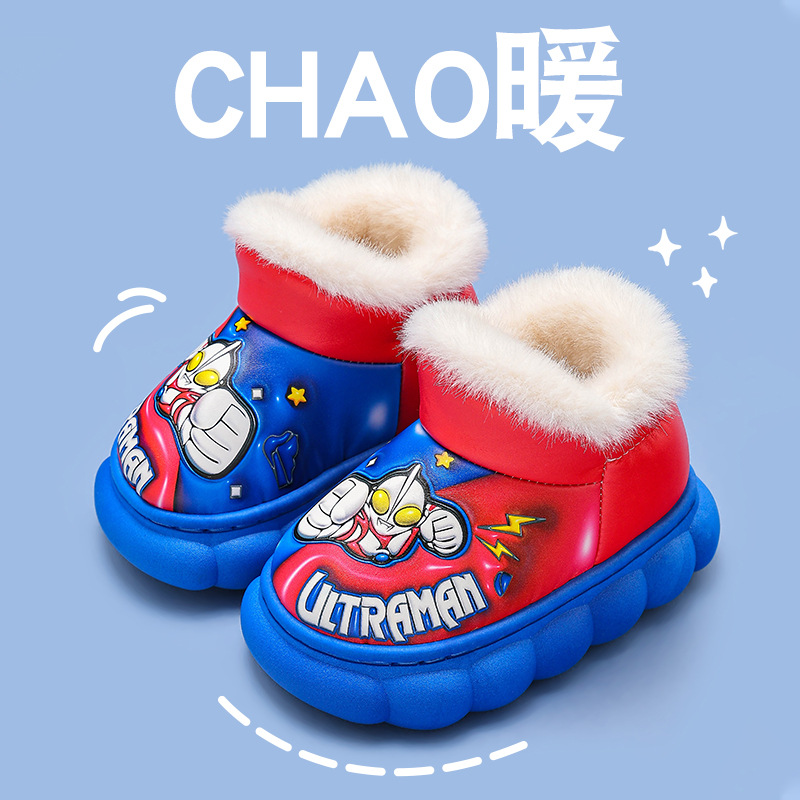 ウルトラマン子供綿スリッパと男の子冬赤ちゃん綿靴室内滑り止め子供家庭保温毛靴