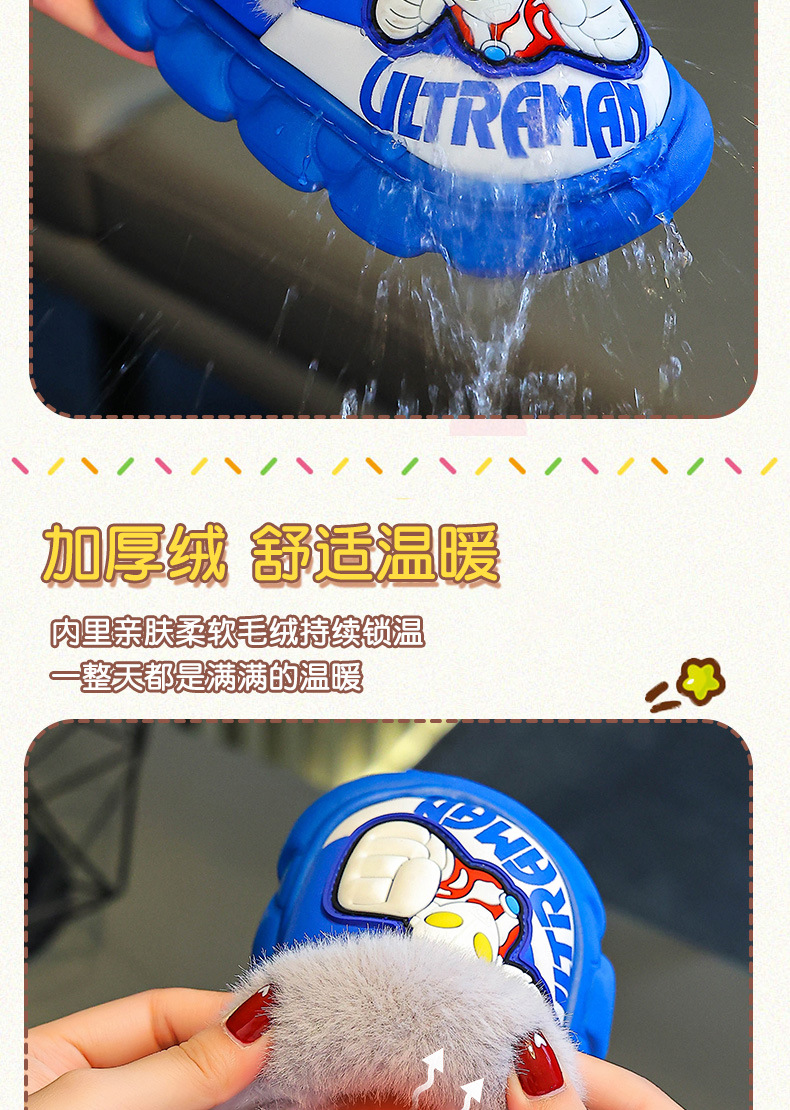 奥特曼儿童棉拖鞋冬季防水男童小孩卡通防滑室内家居鞋保暖拖鞋