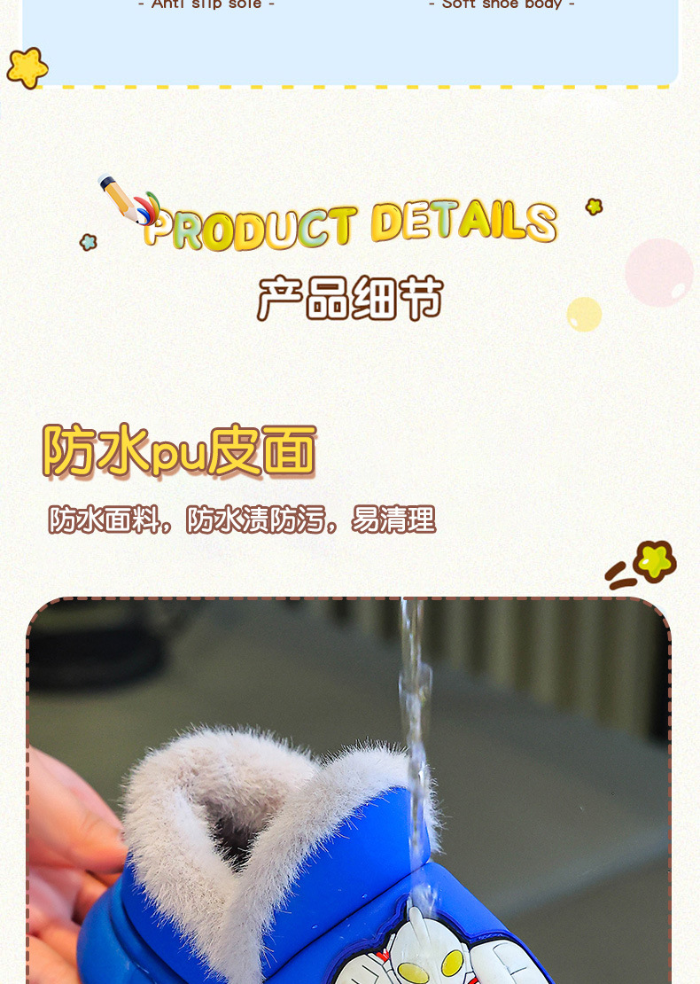 奥特曼儿童棉拖鞋儿童靴子pu皮软防水底防滑加绒加厚保暖男女鞋冬