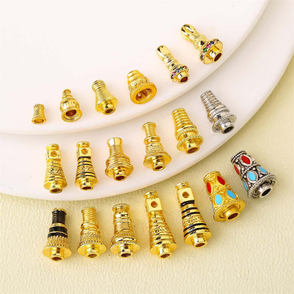 18k包金保色星月紫檀金剛三通銅入れジルコン仏塔数珠仏頭塔帽塔頭部品