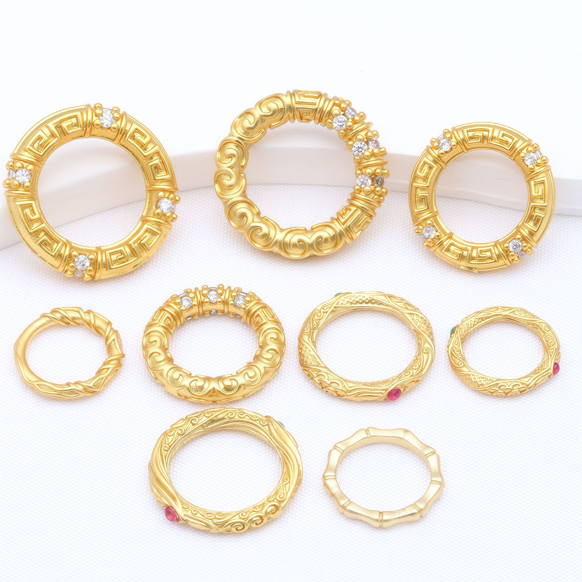 保色古法金微镶跑环紧箍圈乾坤圈卡环回纹隔圈diy串珠饰品配件